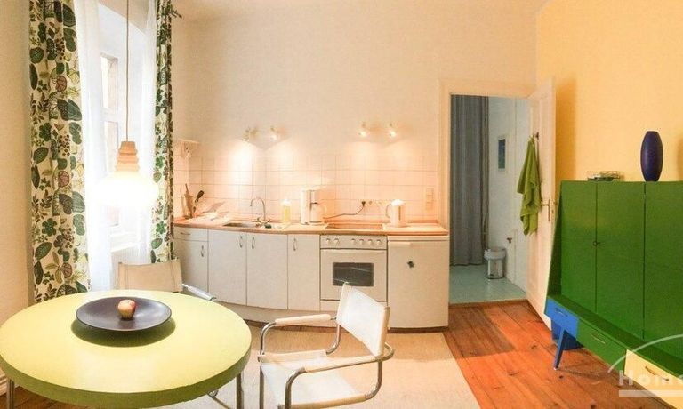Lovely studio flat in the popular area of Kreuzberg. The apartment is beautifully furnished and equipped with cable TV, washing machine, central heating, fitted kitchen and a dishwasher.