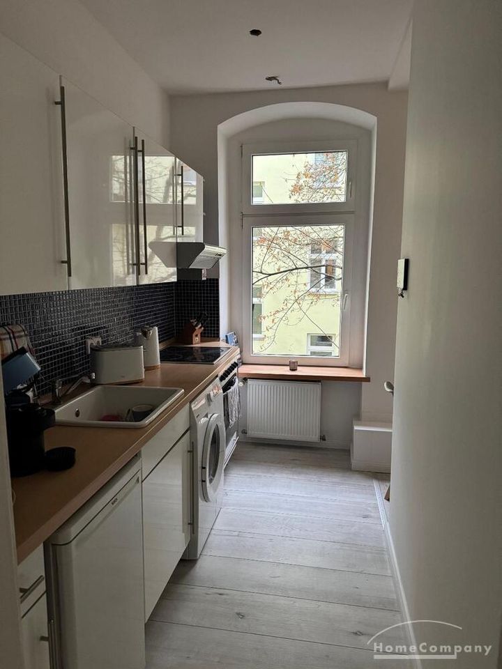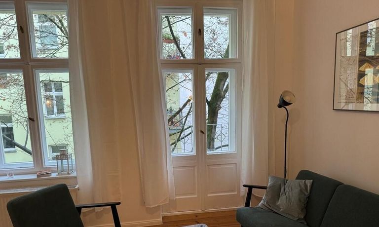 The flat is located in a lovely neighbourhood in Prenzlauer Berg, just a short walk from cafés, shops, restaurants and clubs. Easy transport links to Mitte and Alexanderplatz by tramline M2 and M4 which are only a moment away.