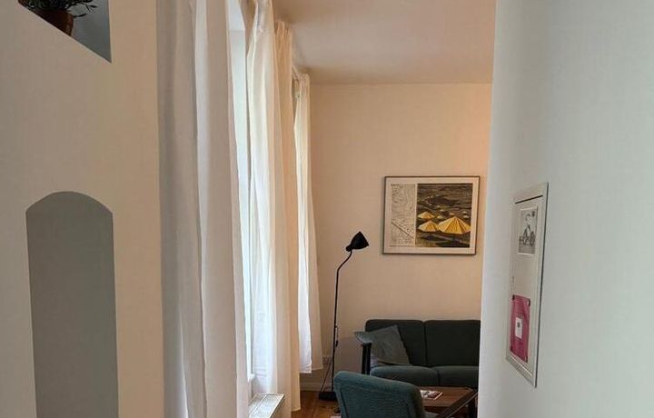 Cosy, quiet and renovated flat with a gorgeous little balcony. The flat comes fully furnished with a kingsize doublebed, new open plan fitted kitchen, washing machine with a dryern and a new, modern bathroom.