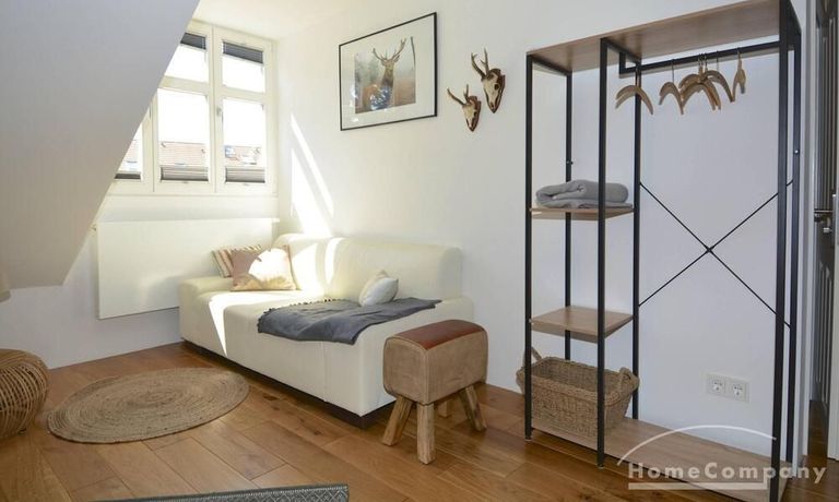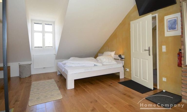 Newly renovated Roof flat in the front building. The apartment has a living room within a double bed. The kitchen is open to the living room. The apartment is fully equipped with 2 TV sets. Babelsberg S (S1, S7) Station is a 10-minute walk. The apartment is located directly on the park Babelsberg, and near the city pool Babelsberg.