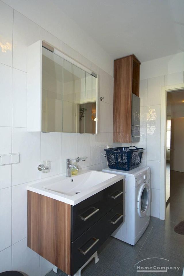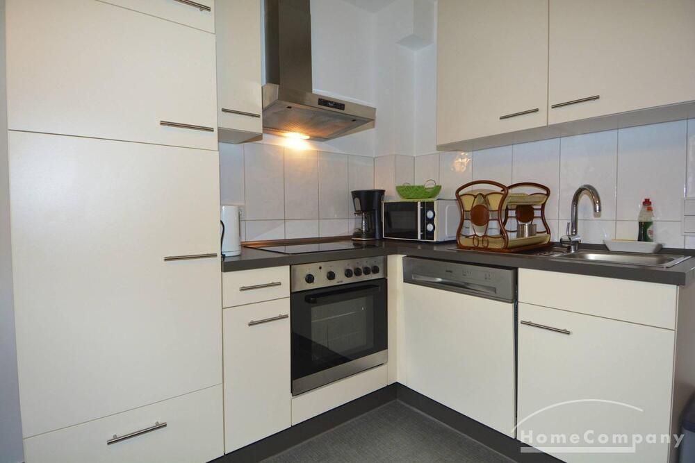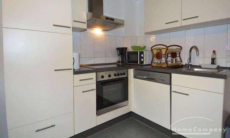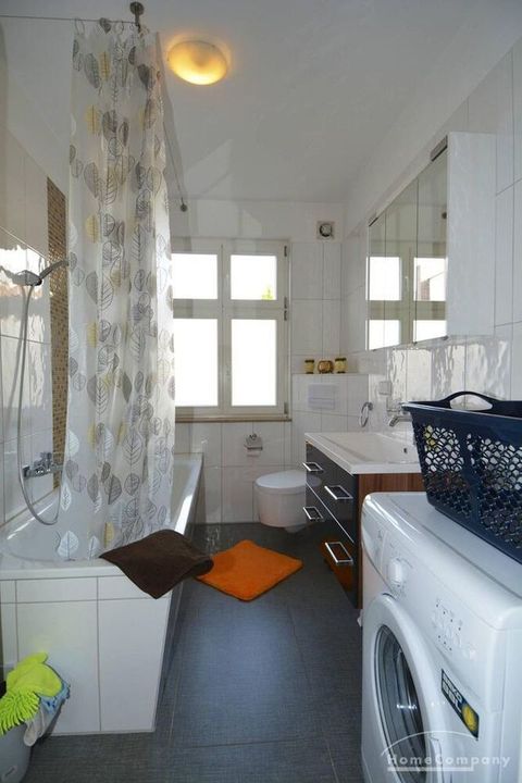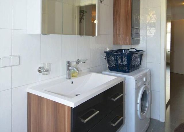 This modern flat offers a beautiful bedroom a nd a bright livingroom adjacent to the open plan kitchen. The bathroom comes with a washing machine. Amenities include underfloor heating, internet, dishwasher.