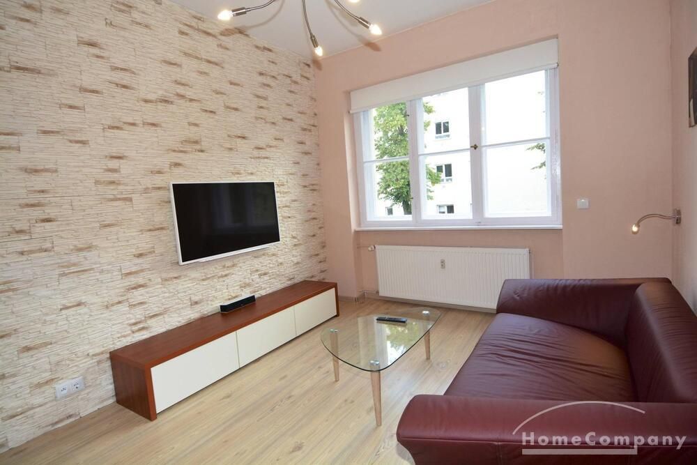 Beautiful, bright 2-room apartment fully furnished in Zehlendorf. Kitchen with built-in appliances, balcony, bathroom with shower and window.