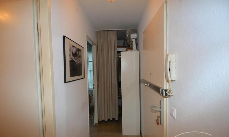 Long hallway with storage space.