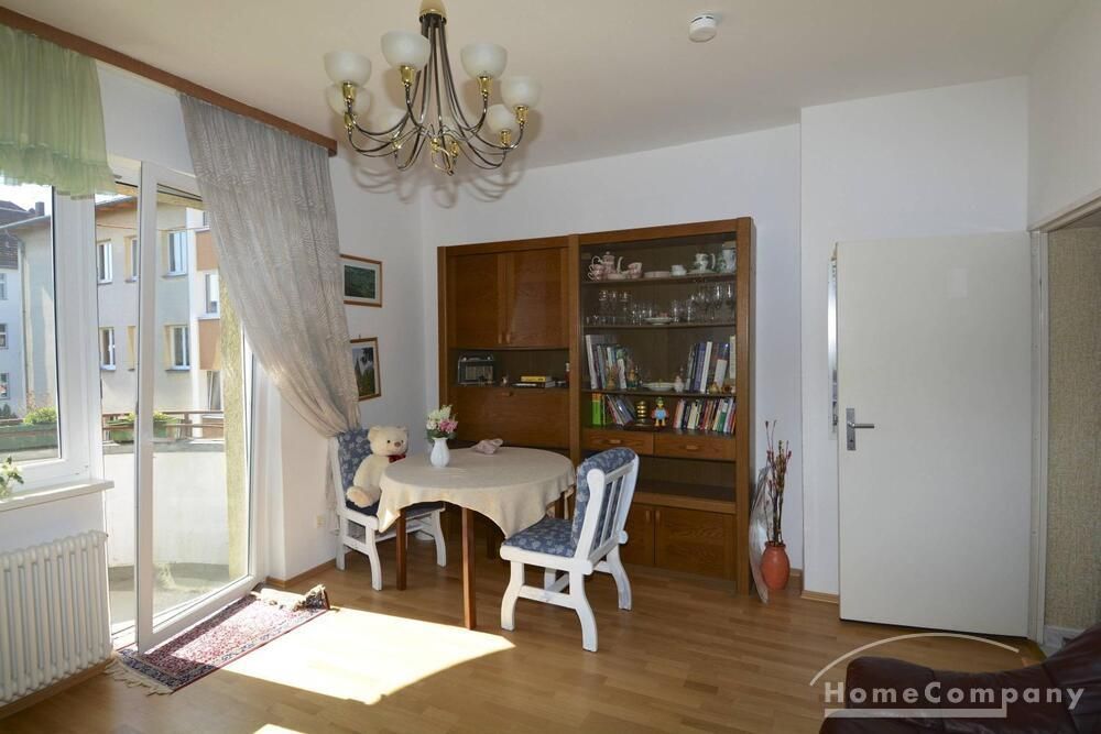 2 room apartment in Berlin Tempelhof, functionally furnished with a new bathroom. The apartment has a bright living room with parquet floors and access to a sunny balcony. There is an additional sofa bed in the living room. The bedroom has a double bed and a large closet.