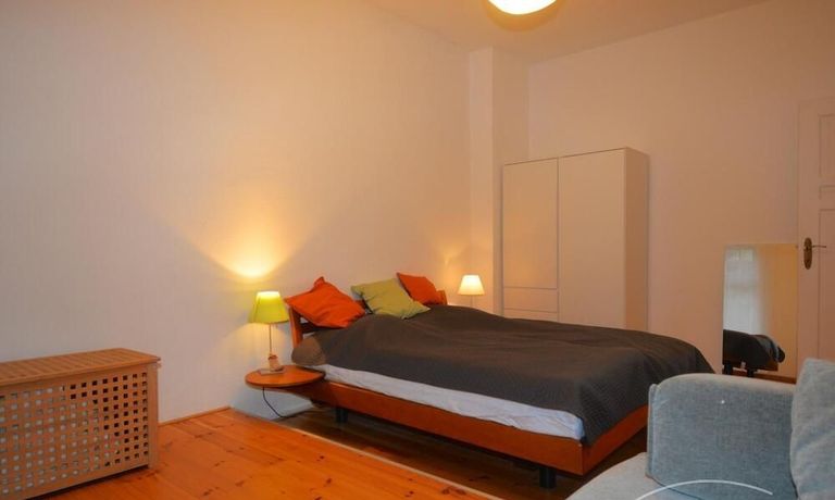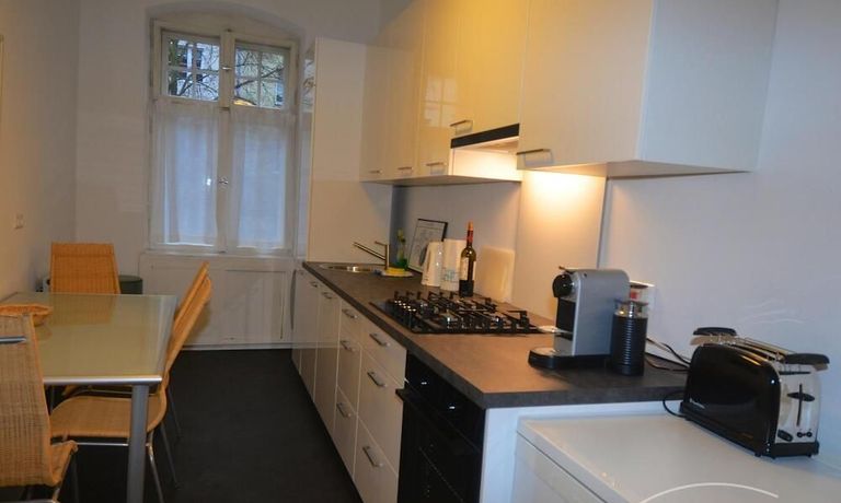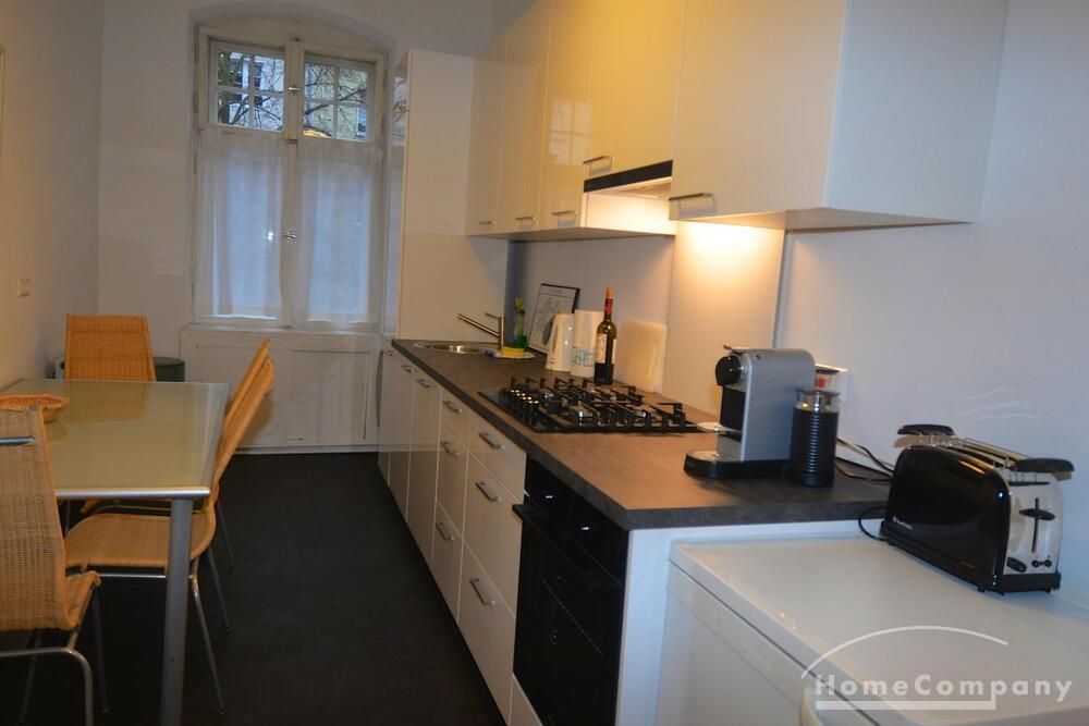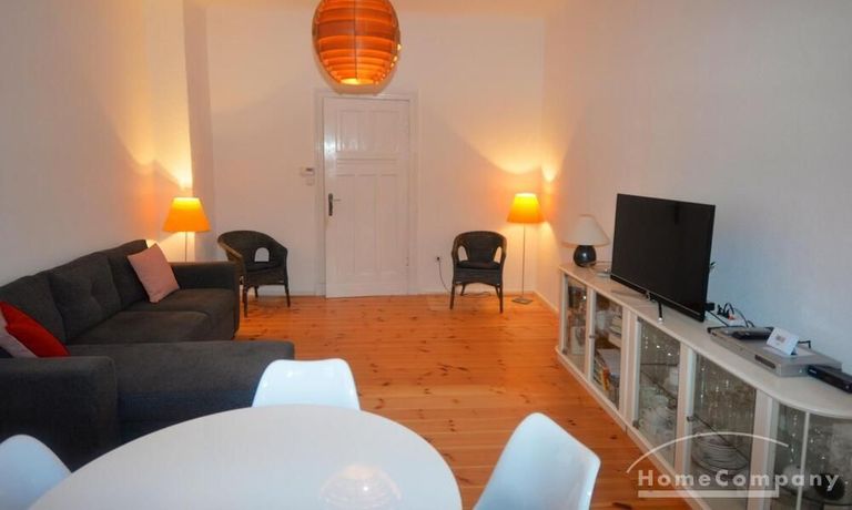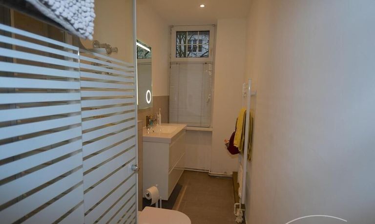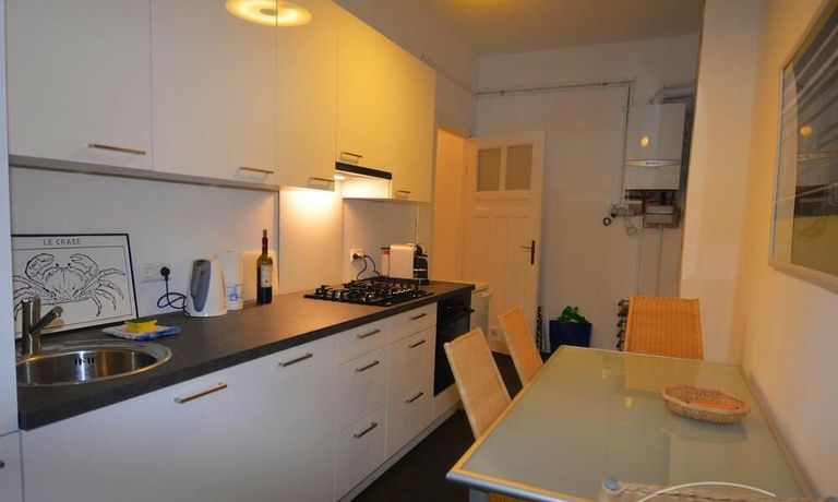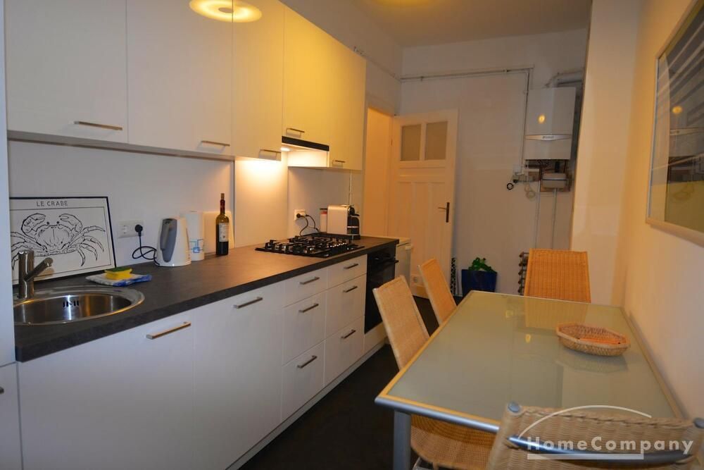 The apartment has been completely renovated. New bathroom with shower, new fitted kitchen with dishwasher and washer-dryer (combination device). There is no balcony but the garden behind the house can be used. The living room is very spacious with a couch and a large table with five chairs. In the bedroom there is another sofa bed next to the double bed. The kitchen is complete with a washer-dryer and dishwasher.
