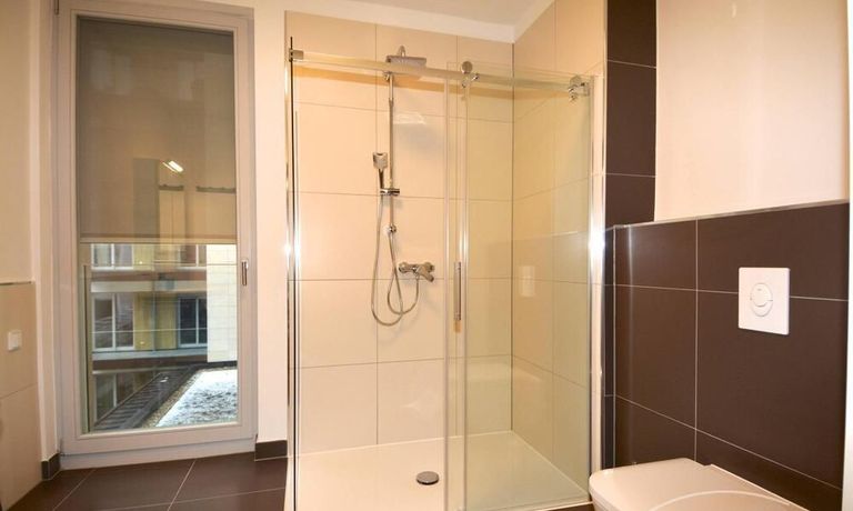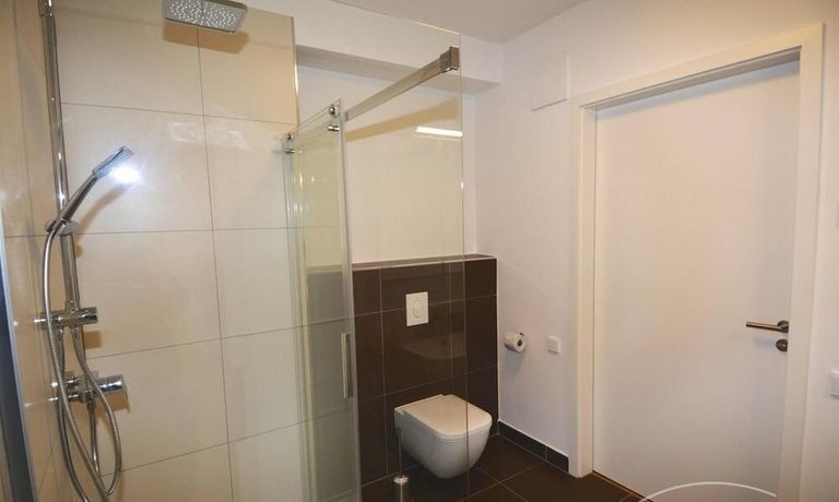 Terrace on the whole length available. Modern tiled bathroom with walk-in shower. Internet and washing machine available.