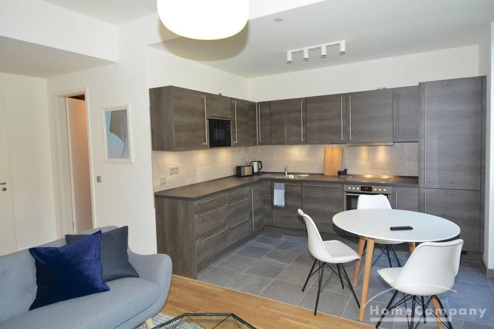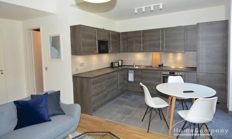 Charming and modern furnished two-room apartment in Berlin Tiergarten overlooking the enchanting Spree. Fully equipped kitchen with dining table. Small bedroom with cozy double bed (140cmx200cm) and large wardrobe.