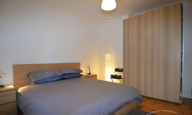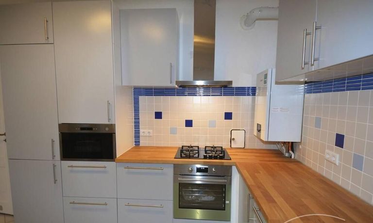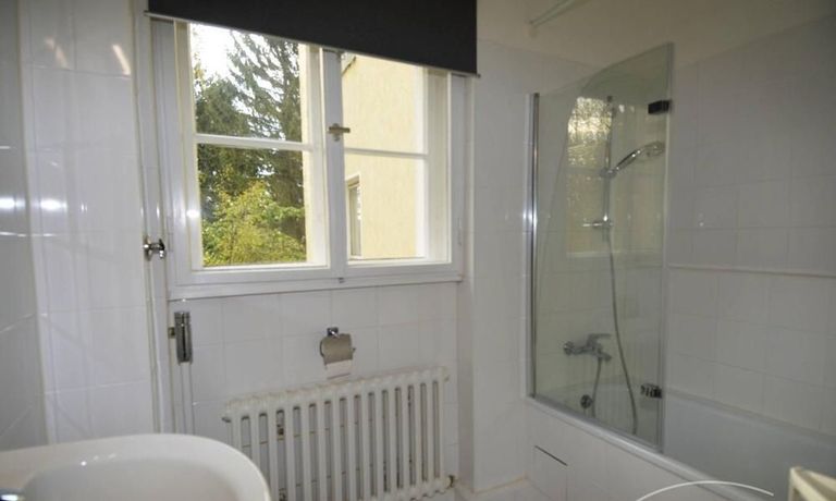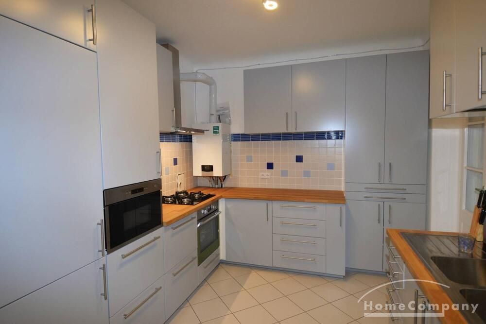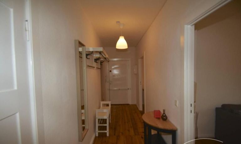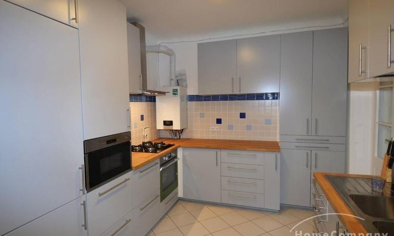 The kitchen is completely new and equipped with all appliances. There is also a winter garden next to the kitchen. The washing machine is located in a chamber that can be reached from the kitchen. The floor of the apartment has a beautiful stripped wooden floor. There is a large Smart TV and DSL Internet.