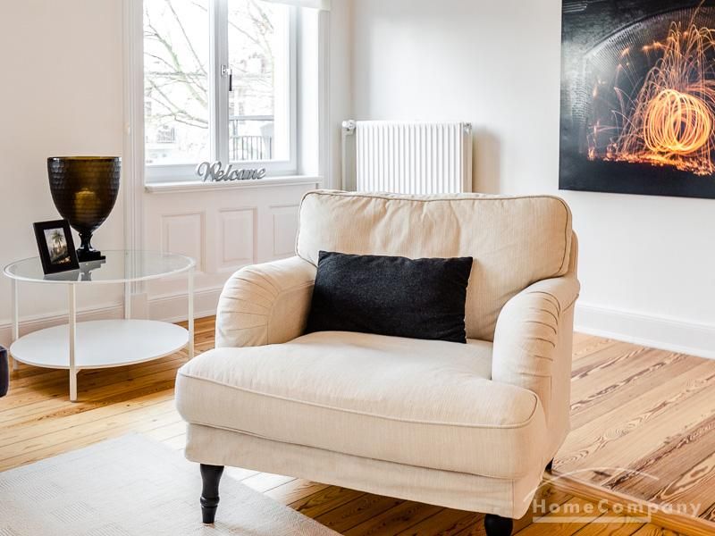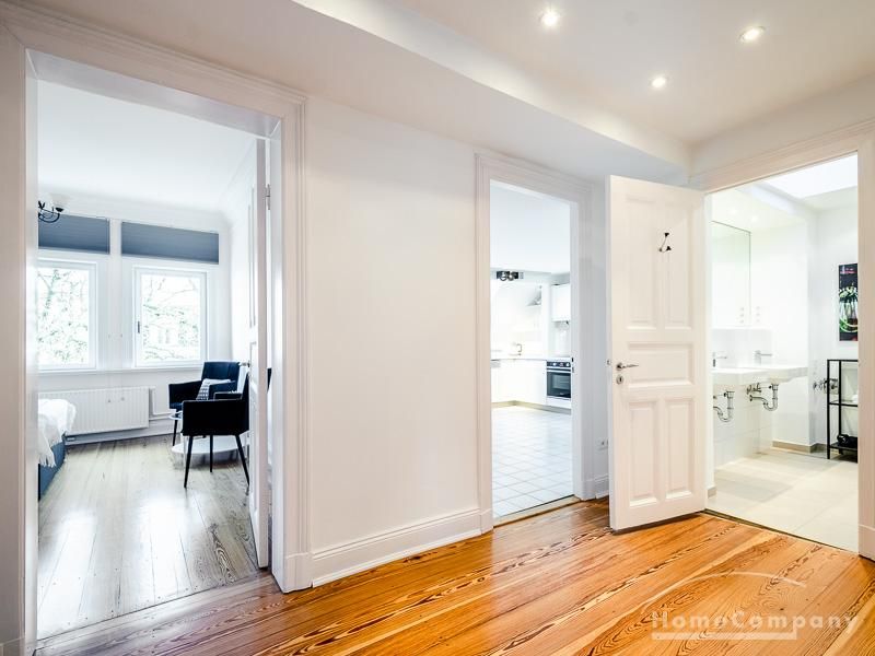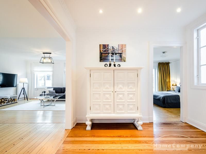 The apartment is located in a prestigious residential area. In just three minutes, the Alster lake can be reached, as well as the Eichtalpark. Upscale shopping is available in the vicinity at Eppendorfer Baum and in Winterhude abundant. The house was completely renovated in 2015. All rooms are furnished with light wooden floors.