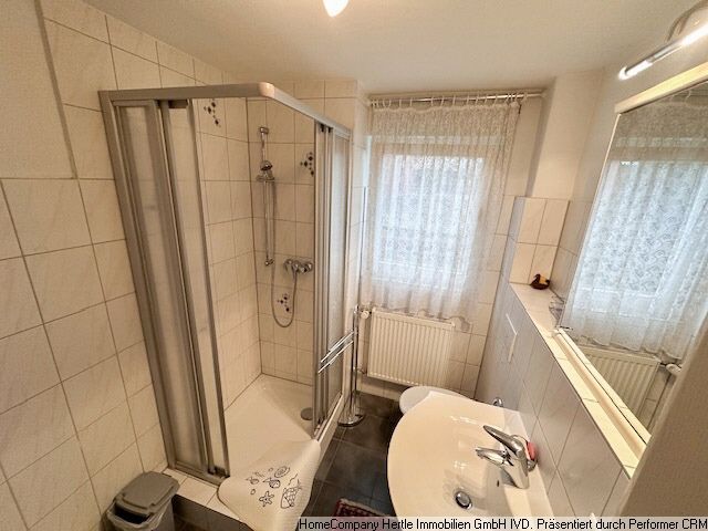Sink, shower, mirror cabinet with lighting,