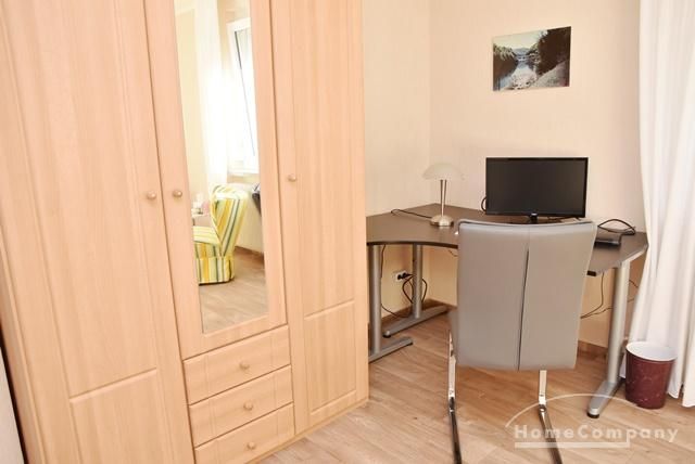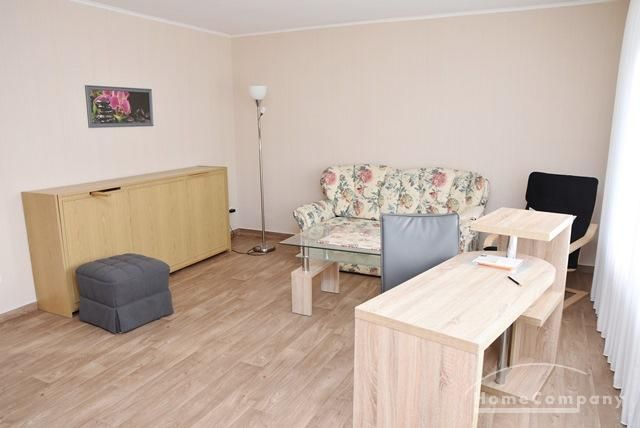 1st living / bedroom with sofa bed 160×200 cm, coffee table, desk with chair, wall unit with cable TV, Murphy bed 90×200 cm, laminate, access to