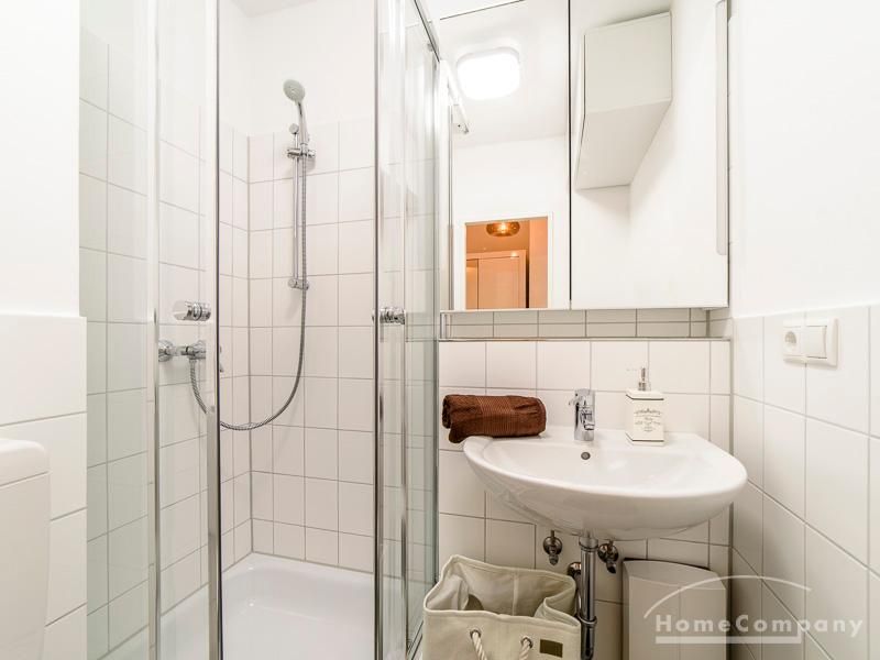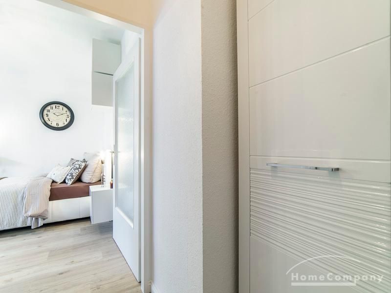 This business apartment offers an excellent value for money. Business travelers will find an apartment that is not only stylish and modern, but also well thought out and lovingly furnished. The unique wall design, individually and carefully selected design lamps and accessories create a modern and pleasant living atmosphere. The bathroom with shower and new shower glass wall is kept in white. The new, also in white fitted kitchen offers everything necessary even in the smallest space. In addition to a fridge and sink, there is a two-ring ceramic hob and a microwave with baking function. The living-sleeping area is furnished with a cozy 1×2 m box spring bed, which offers high sleeping and lying comfort. There is also a design armchair with a unique side table. Suspended boards and wall-mounted TV are also integrated.
