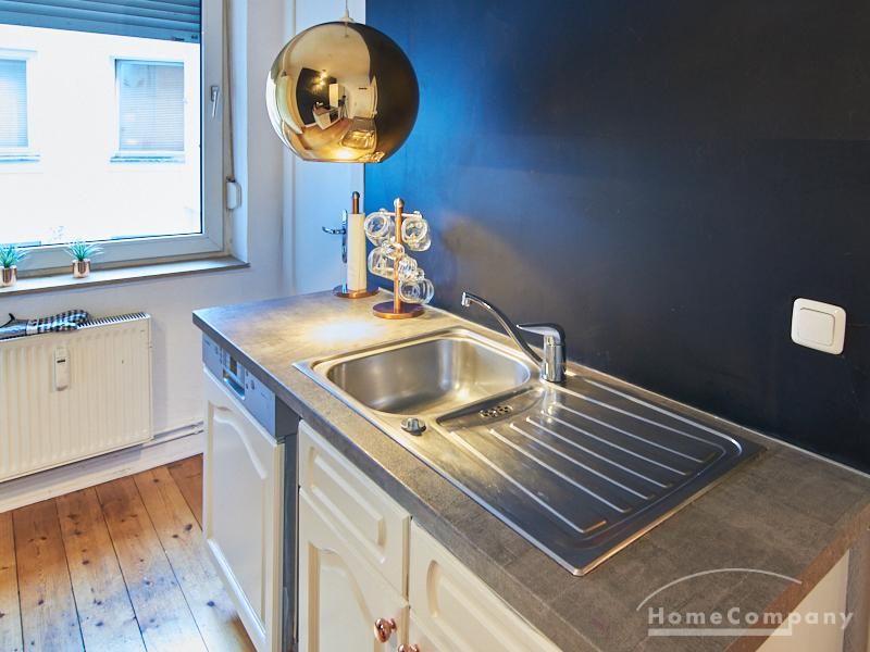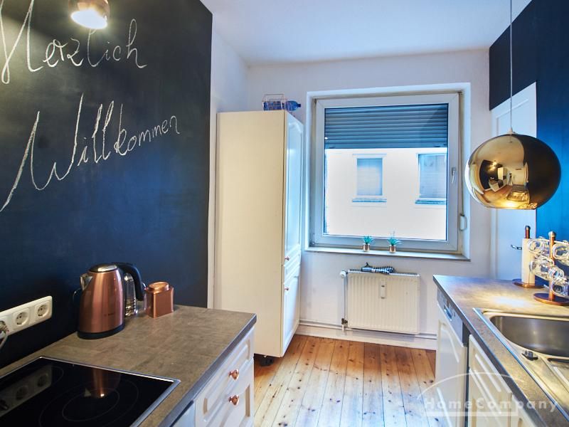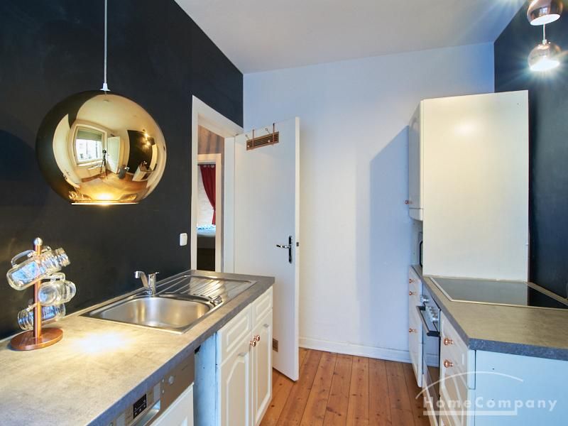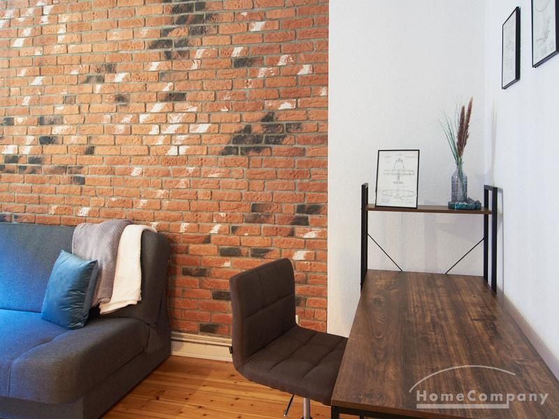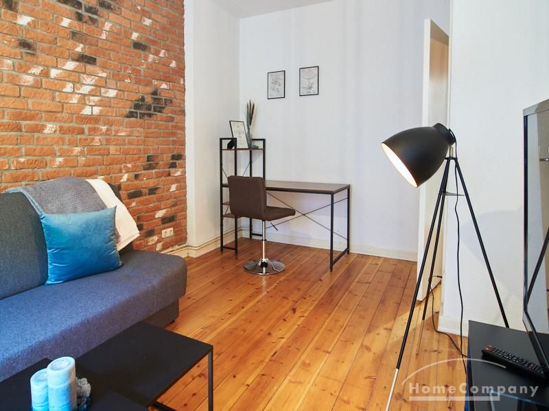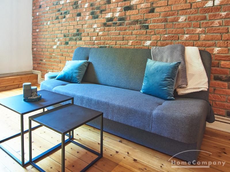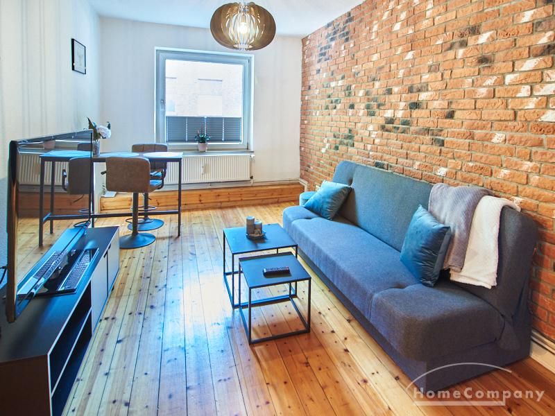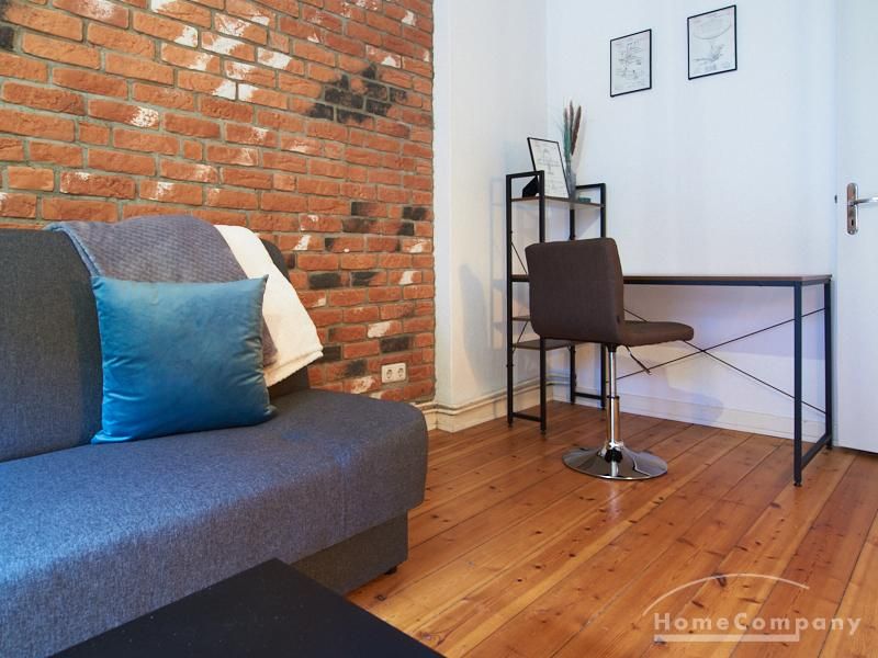 Retro-style apartment in the middle of the Schanzenviertel. Original pieces of furniture are combined with new elements. One wall is covered with real bricks in the living room. In addition to an antique sofa, a small dining area, TV and small side tables, there is a desk. The bedroom is furnished with a double bed. In the kitchen, anthracite-colored, panel-colored walls are combined with modern copper elements. All offers of the Schanzenviertel are located in the immediate vicinity. Trendy bars, cafes, restaurants and colorful little shops are right on the doorstep.