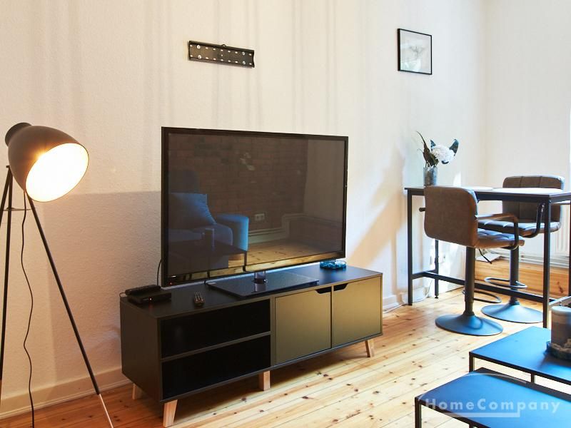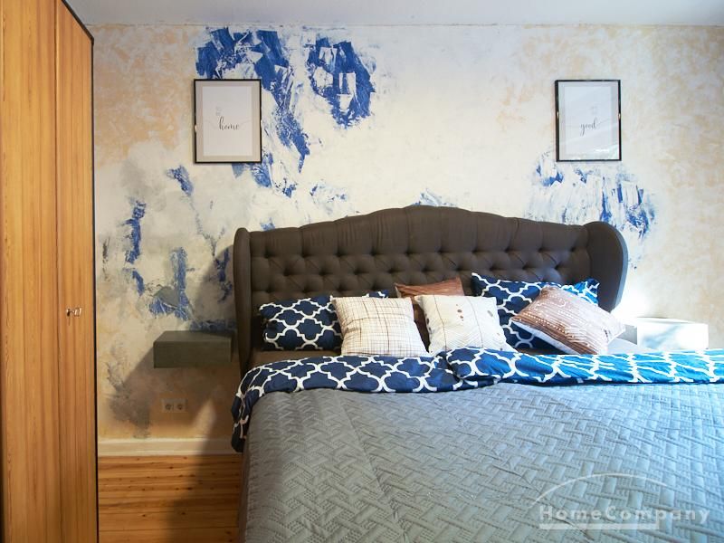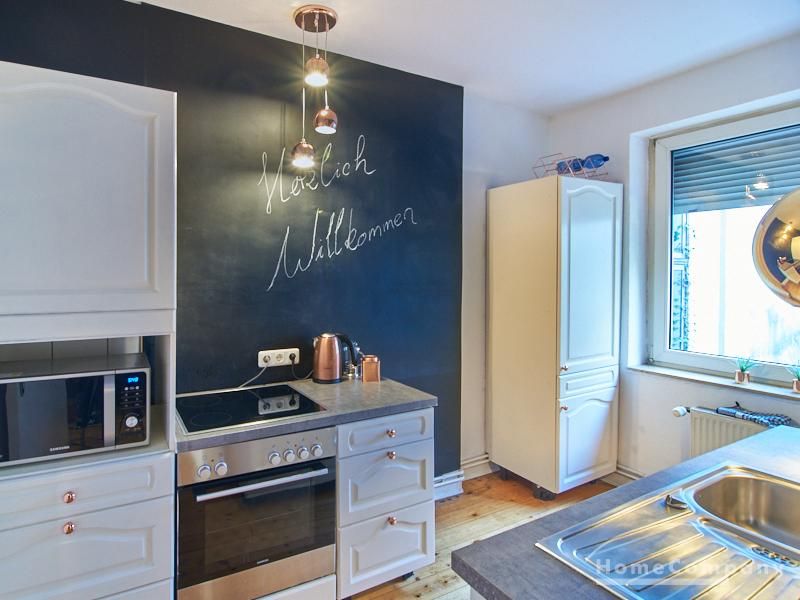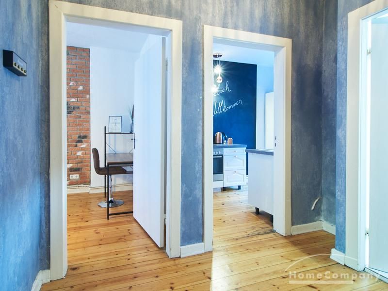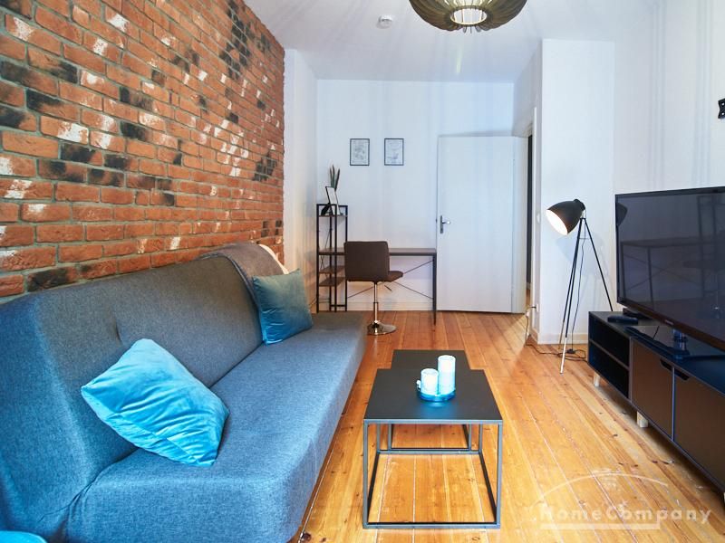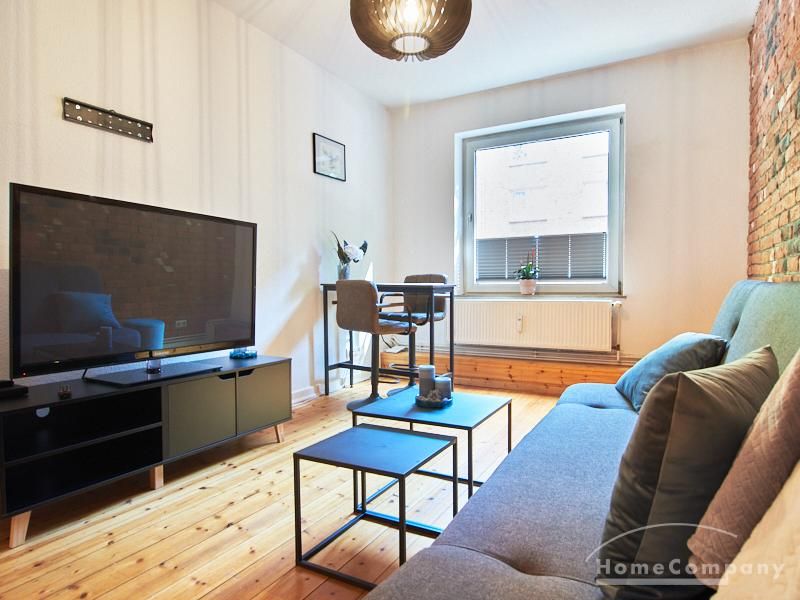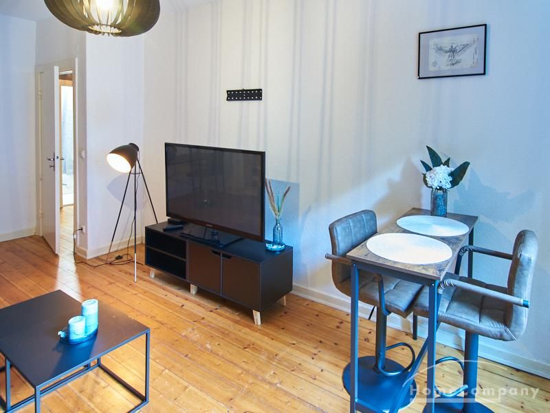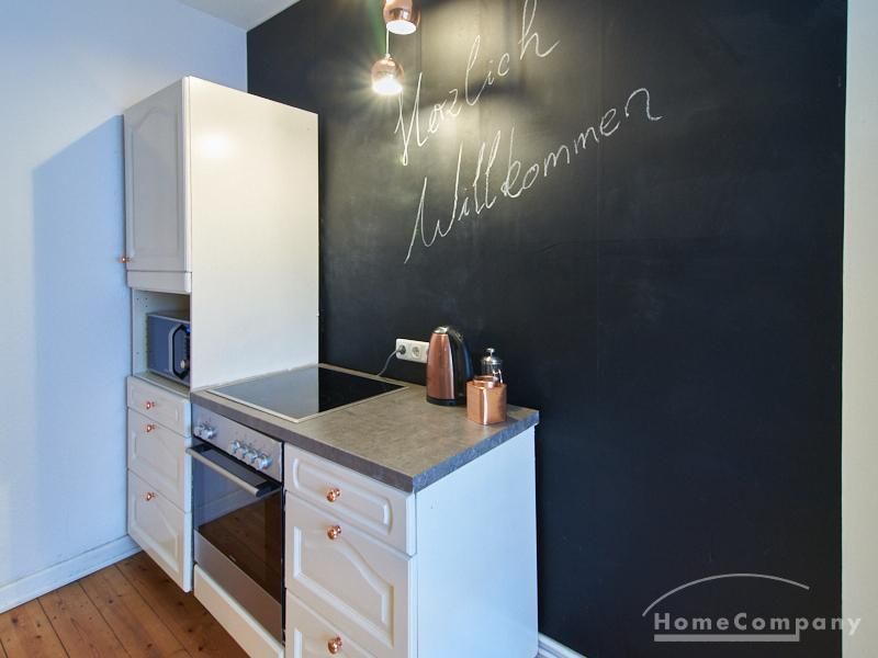Retro-style apartment in the middle of the Schanzenviertel. Original pieces of furniture are combined with new elements. One wall is covered with real bricks in the living room. In addition to an antique sofa, a small dining area, TV and small side tables, there is a desk. The bedroom is furnished with a double bed. In the kitchen, anthracite-colored, panel-colored walls are combined with modern copper elements. All offers of the Schanzenviertel are located in the immediate vicinity. Trendy bars, cafes, restaurants and colorful little shops are right on the doorstep.