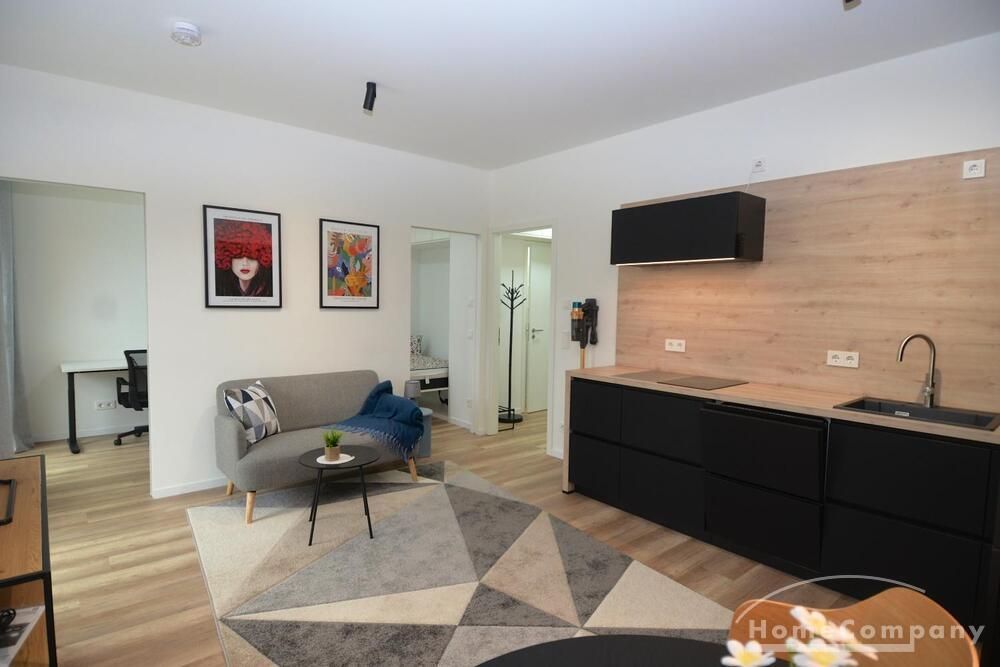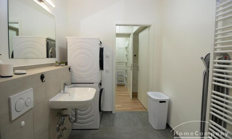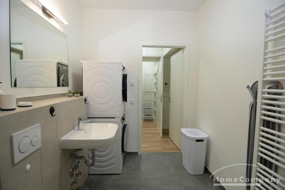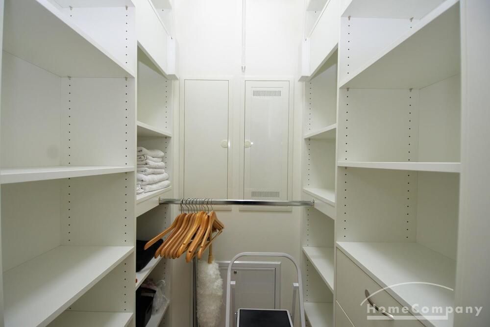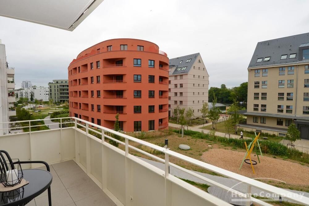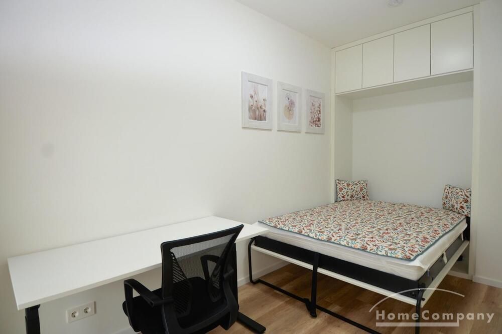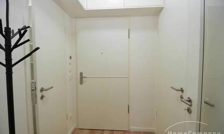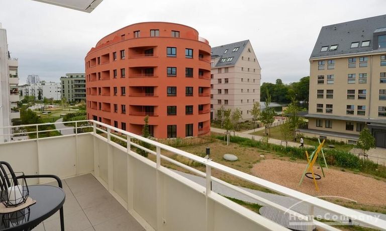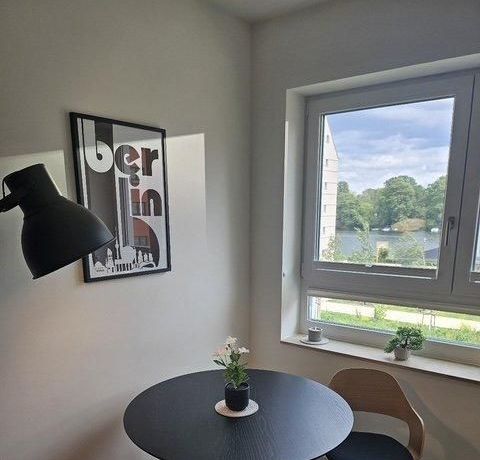 This stylishly furnished, fully equipped, new-build apartment, with an impressive floor plan, features two rooms that meet the highest standards with a modern and timeless design thanks to a spacious, open, and bright living concept. The modern living and kitchen area opens onto a spacious balcony offering a magnificent view of the tranquil, idyllic Havel River. All windows feature high-quality pleated blinds. The kitchen window also has insect screens. The hallway features custom-made built-in wardrobes for ample storage space. A separate room also features a bright, custom-made dressing room with a clothes lift, drawers, and plenty of storage space. Optimal air conditioning ensures maximum living comfort. All rooms have underfloor heating. The designer kitchen features a Bora induction cooktop, Siemens dishwasher, Siemens oven, and a Liebherr refrigerator with separate, spacious freezer drawers. A modern, barrier-free bathroom includes a shower with a seat, as well as an app-controlled Siemens washing machine and separate Siemens dryer. The apartment has fast fiber optic internet with speeds up to 1,000 Mbps.