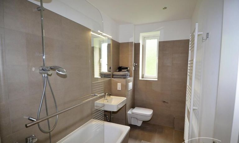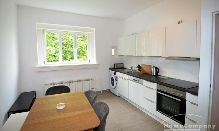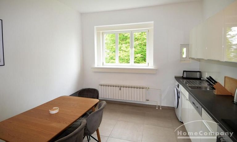 The apartment is furnished and has a bedroom and a living room. Washing machine and dishwasher are available. In the living room there is a dining area and a large, comfortable sofa. The kitchen is very spacious and offers another, small dining table.