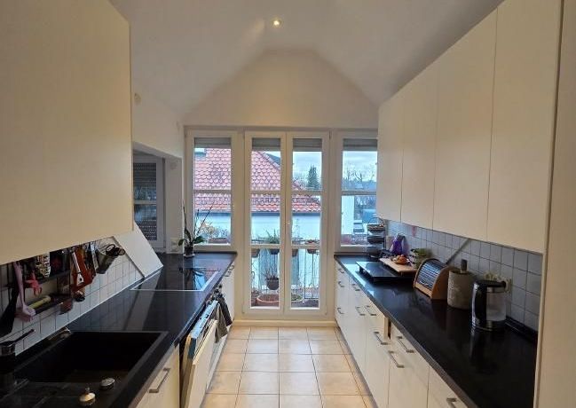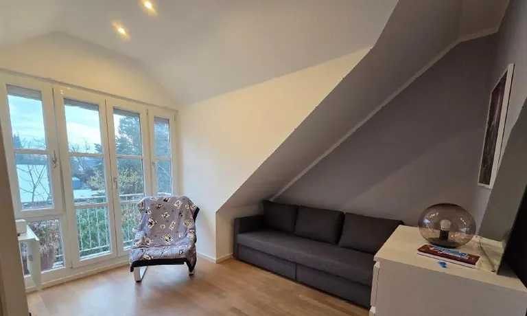 This exceptionally bright and high-quality furnished top-floor apartment in a well-maintained residential building in Munich-Freimann is available for a fixed-term rental.