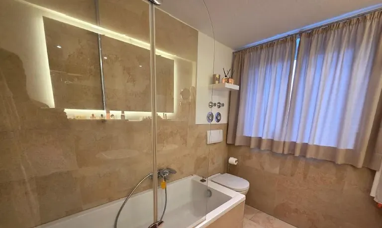 The apartment is rented fully furnished and ready for immediate occupancy – including all furniture, a fully equipped kitchen, and a bed with mattresses. A guest room with a sofa bed is also available.