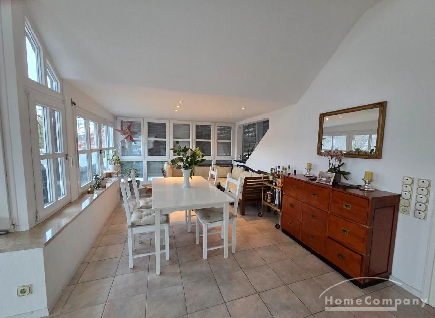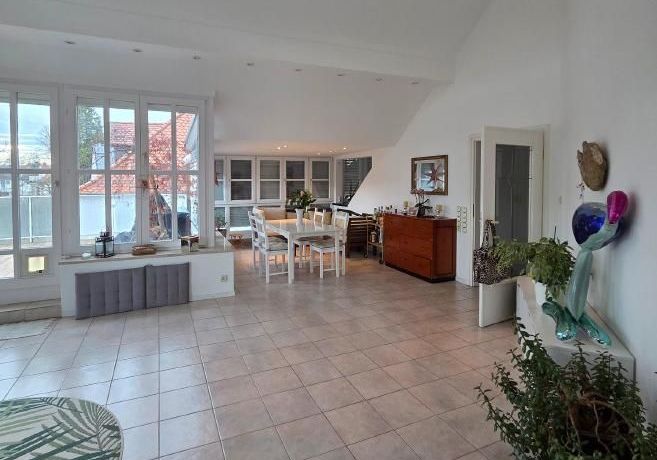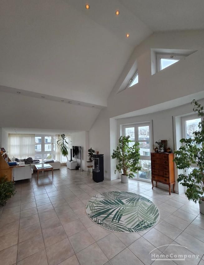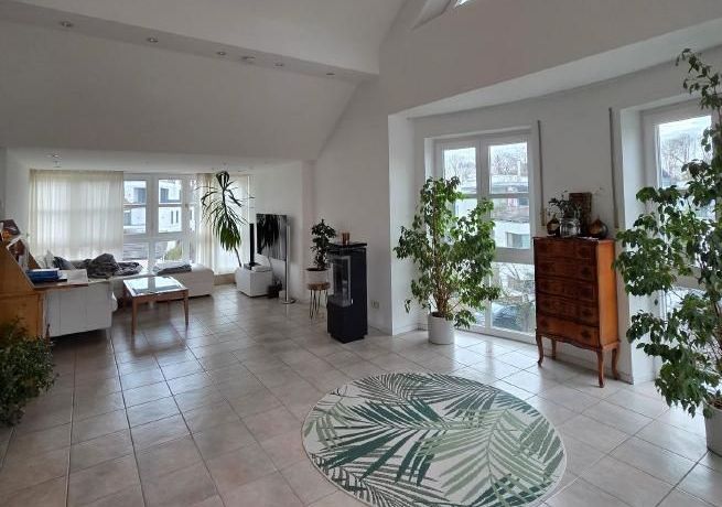 The absolute highlight of the apartment is the spacious living room with an impressive ceiling height of up to 4 meters, complemented by large window fronts that create a light-filled and airy atmosphere. Directly adjacent is the expansive rooftop terrace, inviting you to relax and unwind.