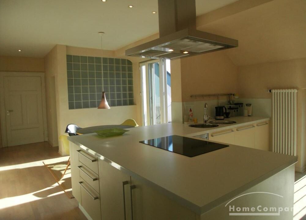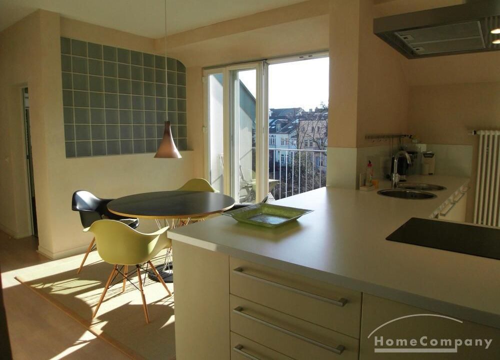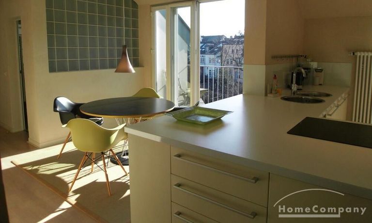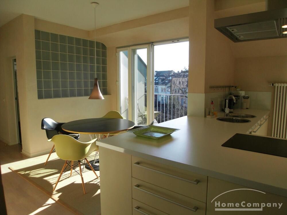 2 rooms with design furniture in a prime location on the top floor of a beautiful Südstadt Art Nouveau hous. Living room, bedroom, large living room with balcony overlooking a romantic garden, bathroom with shower / WC.