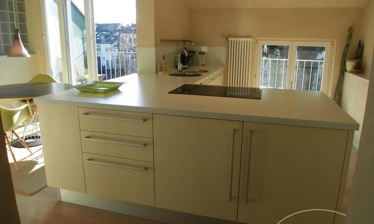 The apartment is in a quiet yet very central. Station, University, the Hofgarten, Rhine promenade and the restaurants and cafes of vibrant walk away for 2-5 minutes. Supermarket about 5 minutes walk.