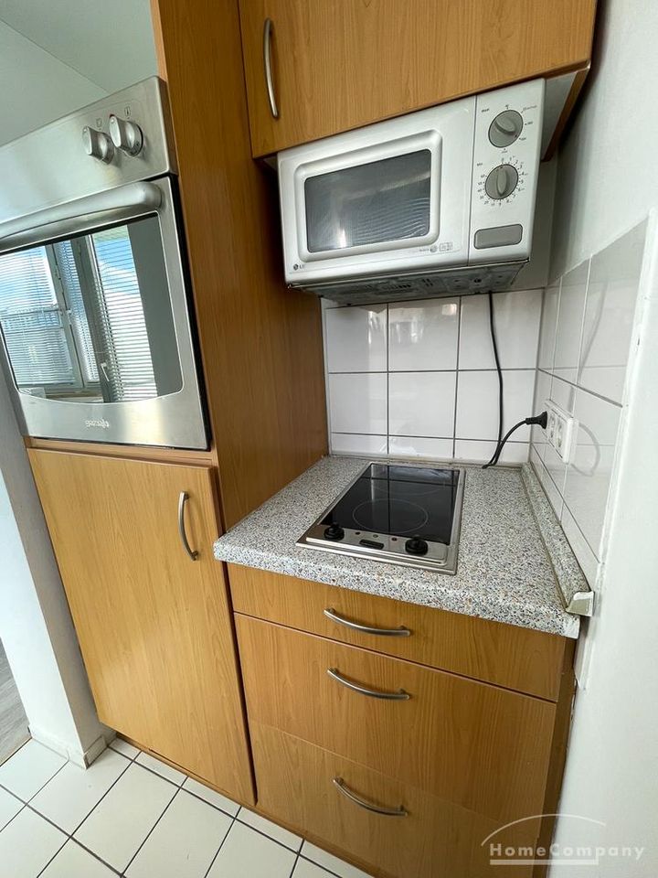 Exclusive, furnished 1-room apartment (Typ San Marino) in the Westend. Living/bedroom with queen-size designer bed (160 x 200 cm) with latex natural-caoutchouc mattress (suitably for allergic persons). Wardrobe, dinner table and chairs, designer sofa (used as a bed), large escritoire. LCD flatscreen TV, DVD, CD. Kitchen with oven, microwave and fridge with freezer. Bathtub with glass shower cabin.