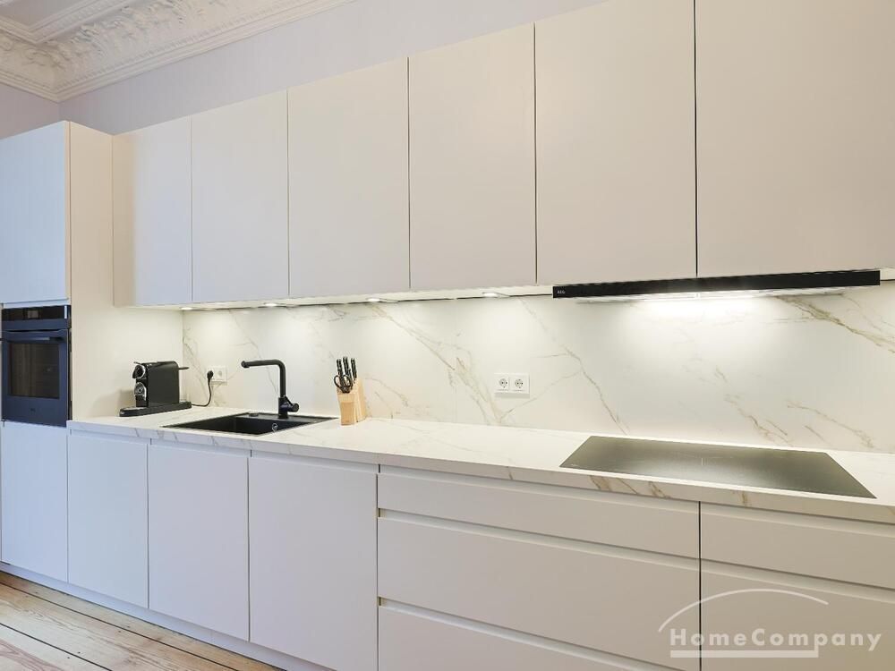 The flat, which was stylishly renovated in 2024, offers a spacious and flexible room design. The high ceilings of approx. 3 meters and magnificent stucco elements create a spacious and airy feeling of space. The new designer kitchen and the bright, modern bathroom invite you to feel good. Unmistakable details and comfort: The classic pitch pine wooden floorboards, paneled doors and stucco decorations emphasize the authentic old building charm. A balcony serves as an ideal place for relaxation and enjoyment. Urban lifestyle combined with historical elegance in a good residential area close to the Alster. This prestigious residential address offers not only unparalleled convenience, but also excellent recreational and leisure opportunities thanks to its close proximity to the Alster. A scenic walk along the water, past the fashion campus and the boathouse of the Hamburg Canoe Club, quickly leads you to the green Alster meadows. Here you can relax, have a barbecue, watch the sailors and enjoy the impressive city panorama.