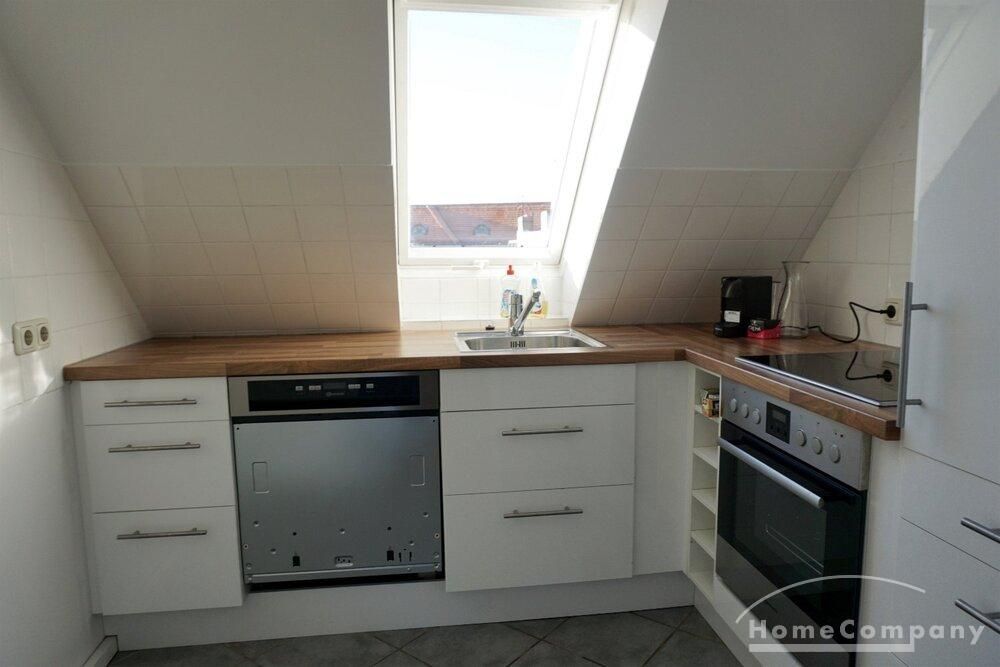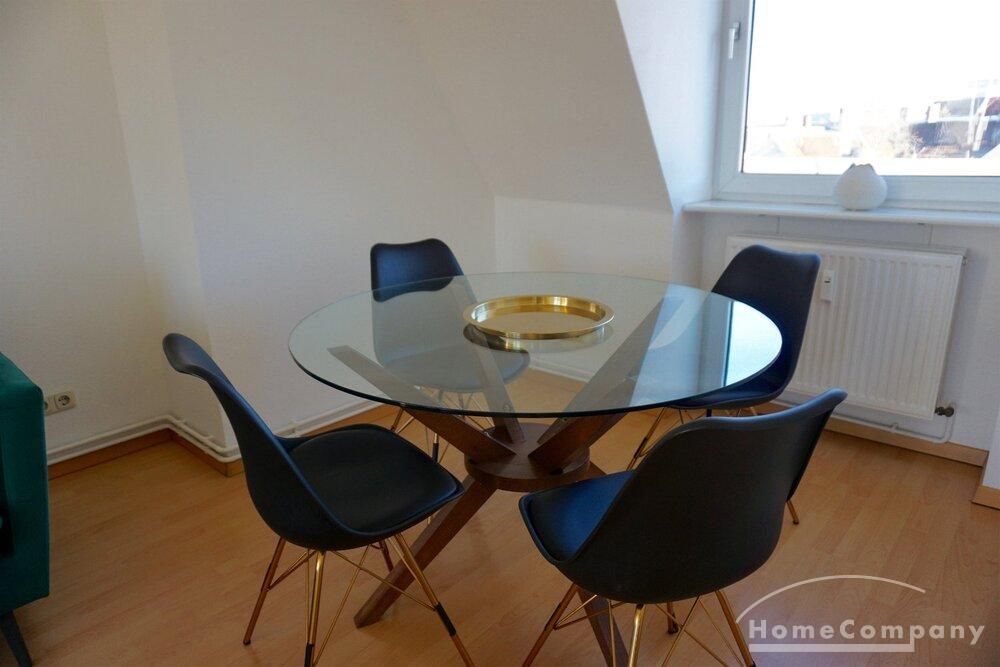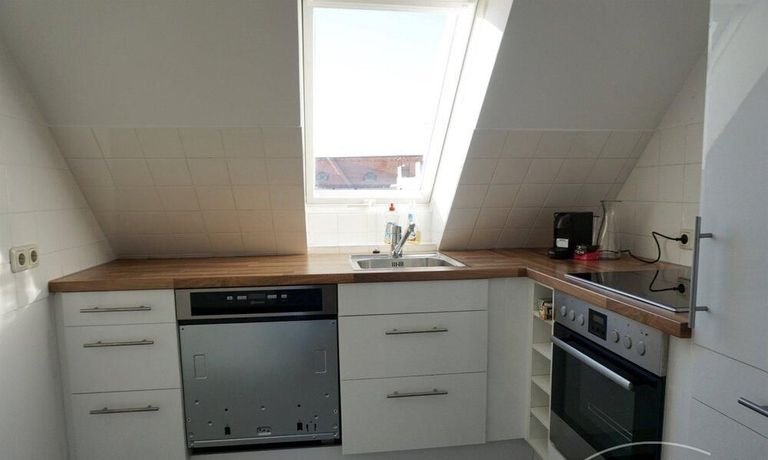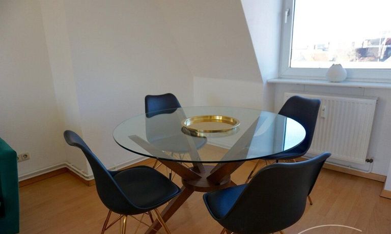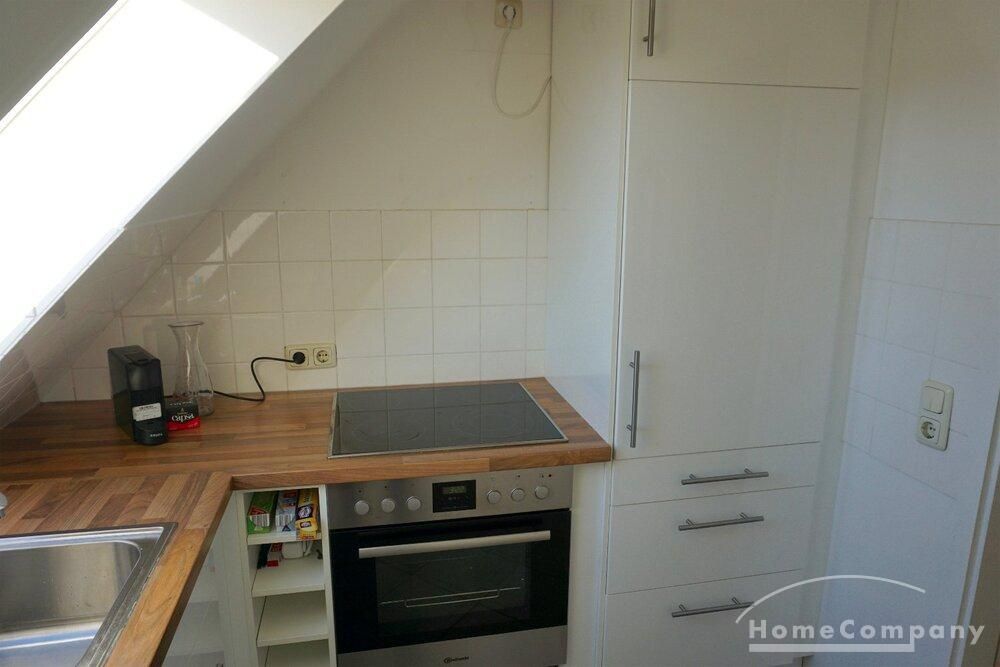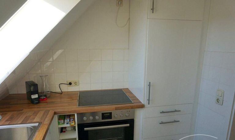 Charming roof apartment in Charlottenburg. The apartment was completely renovated in 2019. Living room with smart TV, sofa and dining area, bedroom with double bed and spacious wardrobe. Quiet rear building.
