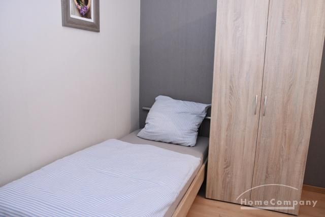 Bedroom with bed 140×200 cm and wardrobe.