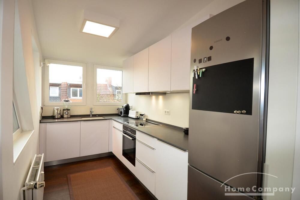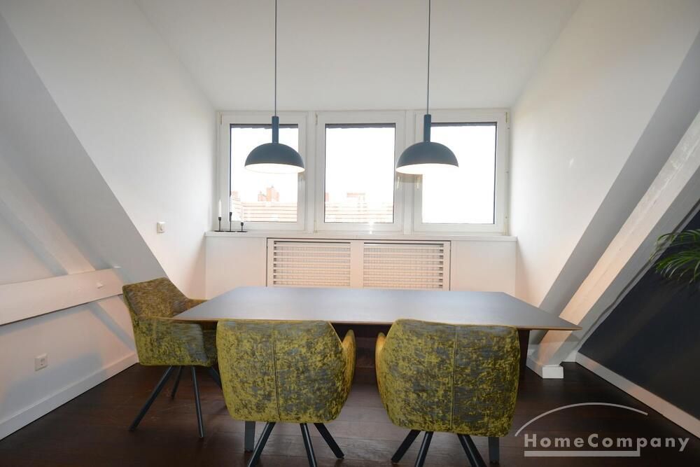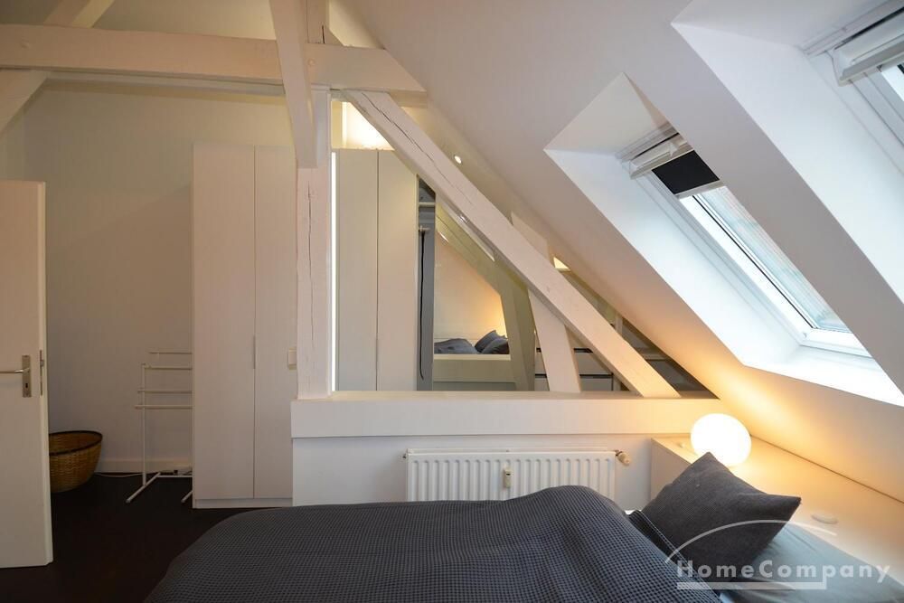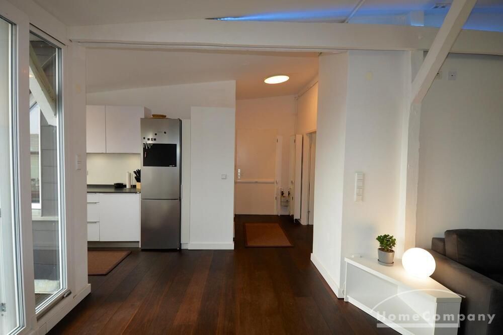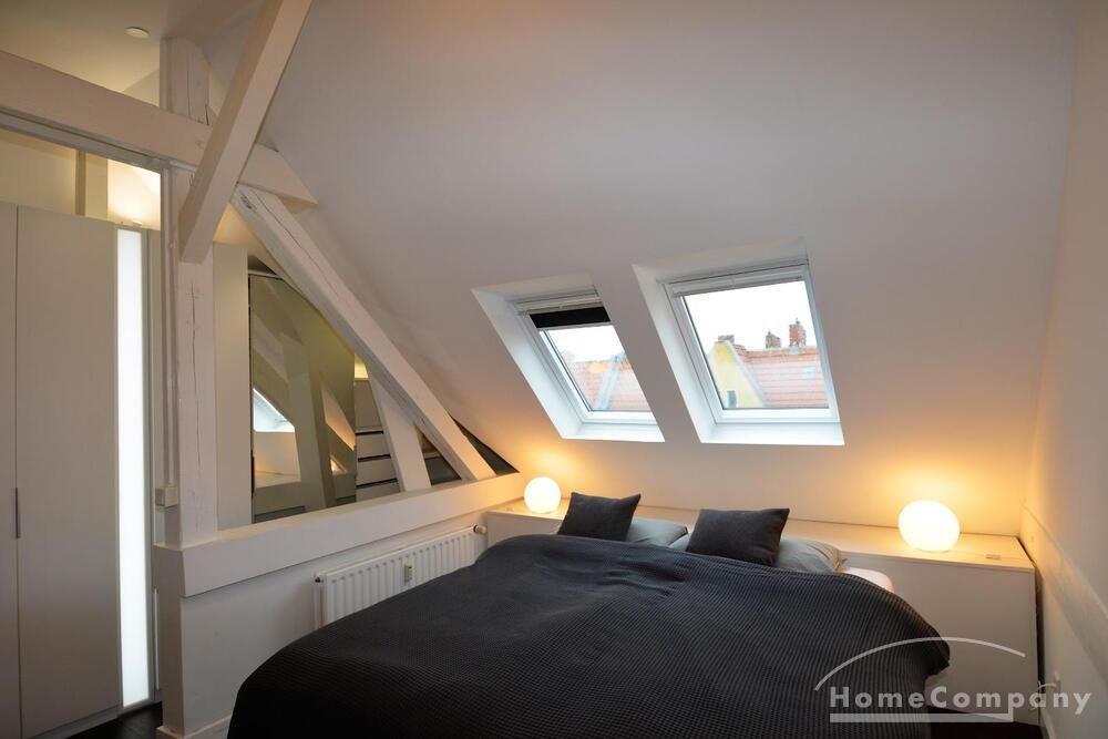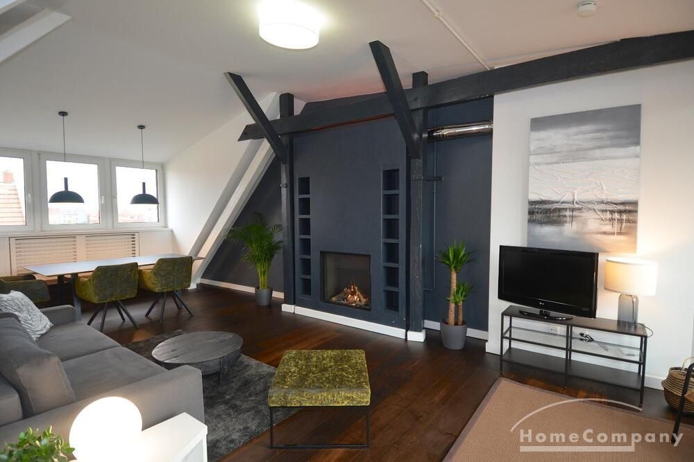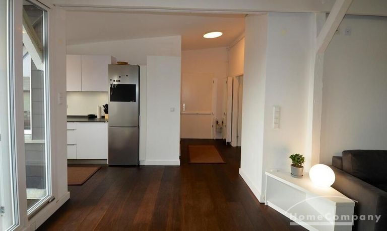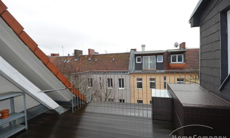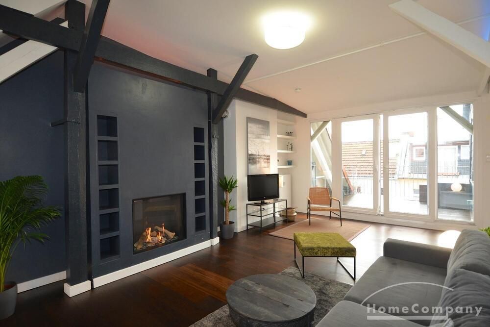 Welcome to this fully furnished apartment in the heart of Berlin Neukölln! The modern attic is flooded with light and tranquility, featuring an inviting gas fireplace, a spacious rooftop terrace, and elegant wooden flooring. The kitchen boasts integrated appliances including a washer-dryer and dishwasher. Luxuriate in the bathroom with both a shower and bathtub, complemented by underfloor heating. The bedroom offers a comfortable 180cm double bed for restful nights. Welcome to the perfect blend of style and comfort in your new home!