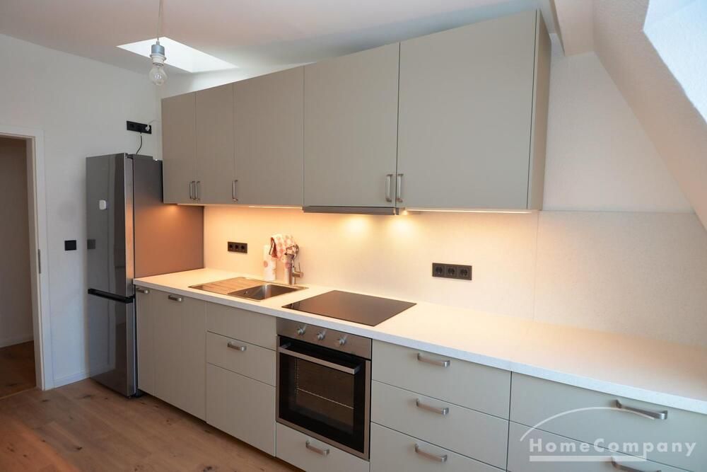 This bright, fully furnished 2-room attic apartment on the 5th floor is located in a quiet area of Berlin-Tegel and impresses with its welcoming atmosphere and beautiful water view.