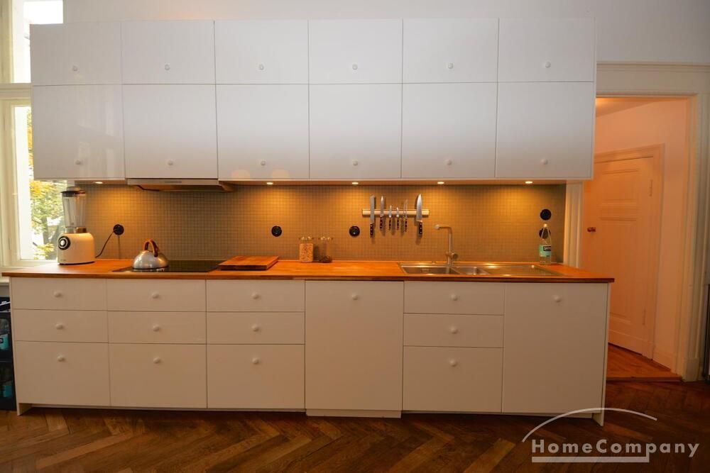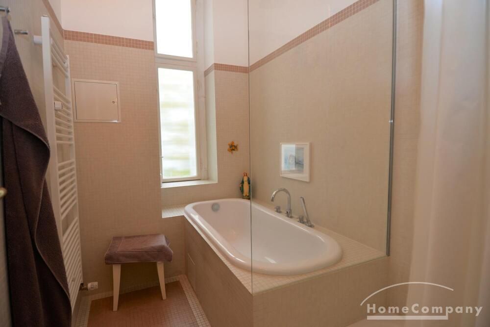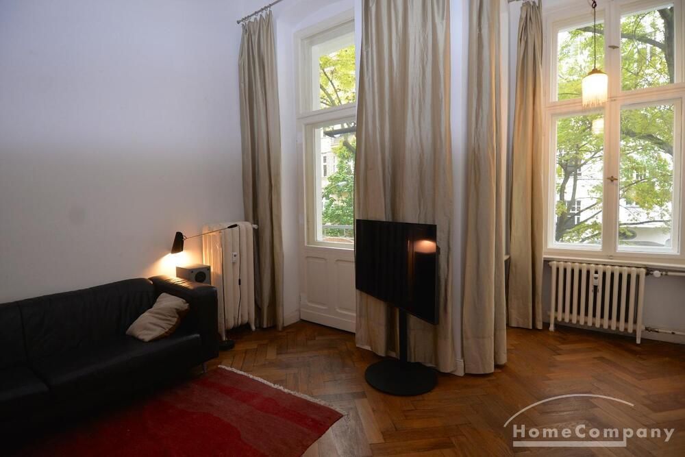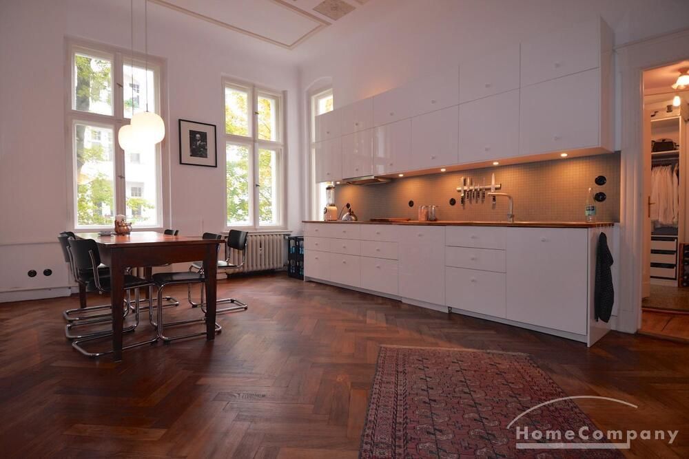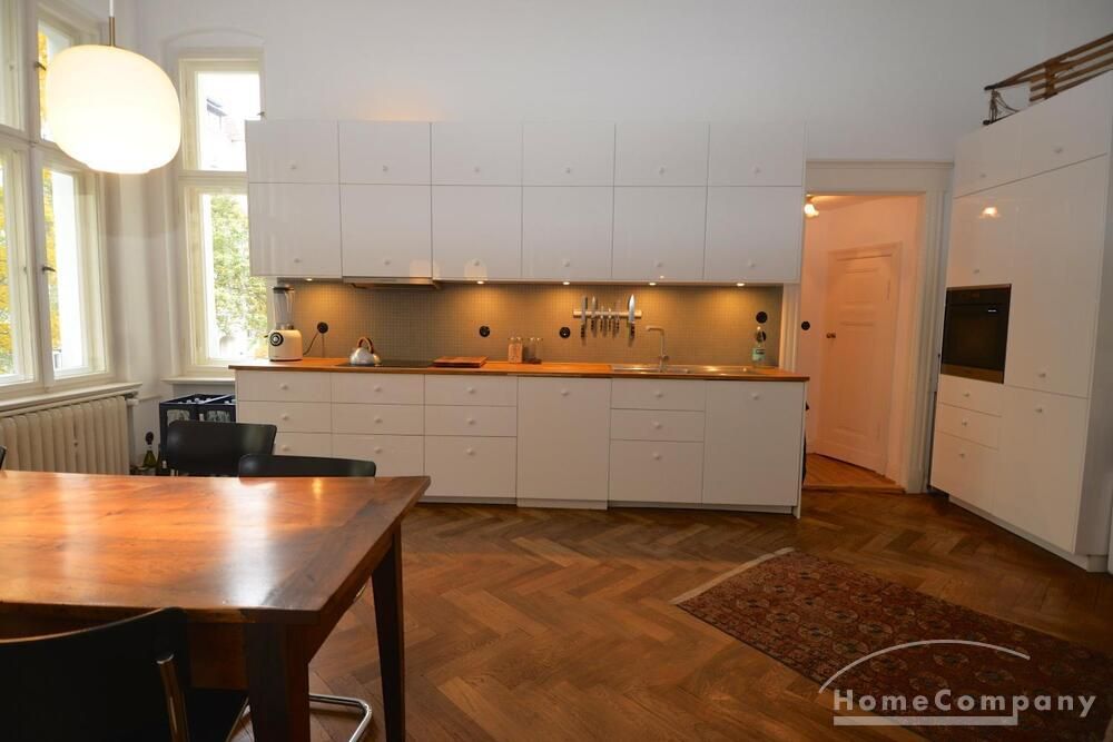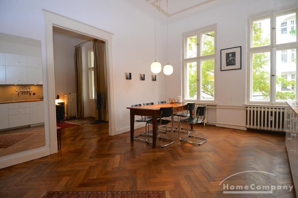 This tasteful and spacious period apartment is located in a quiet part of Schöneberg, just a short walk from Volkspark Wilmersdorf. Fully furnished, it features high ceilings, an open layout, and a bright, welcoming atmosphere. The heart of the home is the large living and dining area with a modern open kitchen and access to the balcony. In addition to the bedroom with a walk-in closet, there is a study with a sofa bed and a guest WC. Situated in an elegant and friendly building community, this apartment is perfect for anyone who values stylish living in a peaceful, green neighborhood.