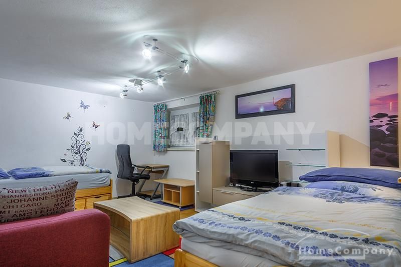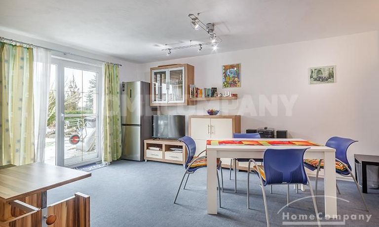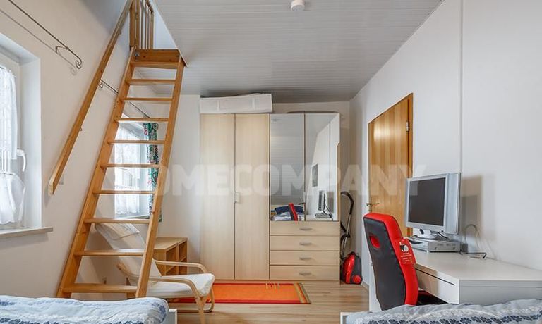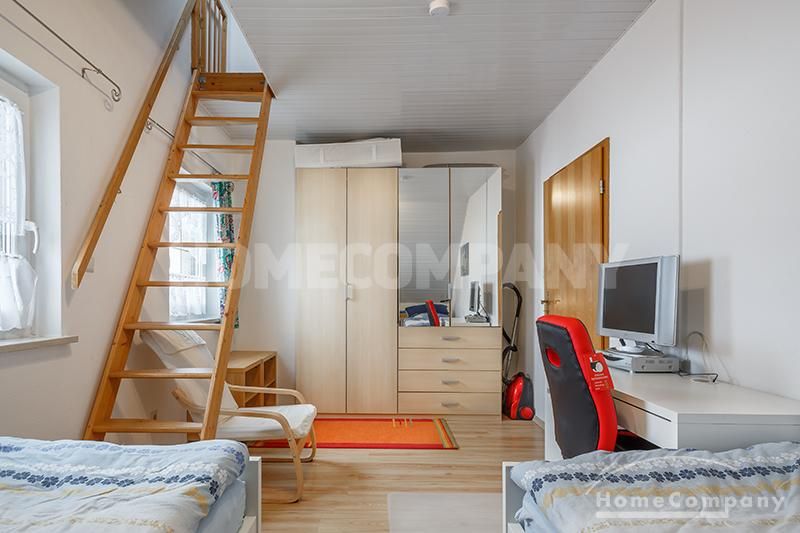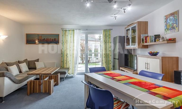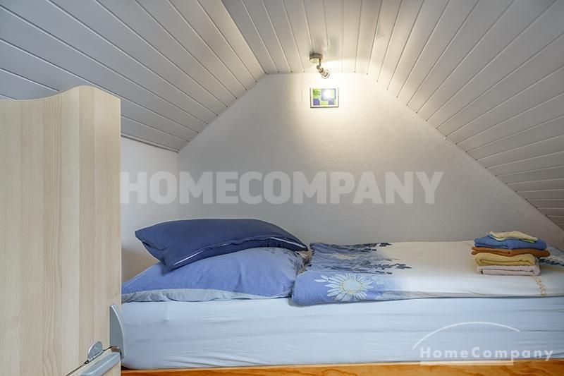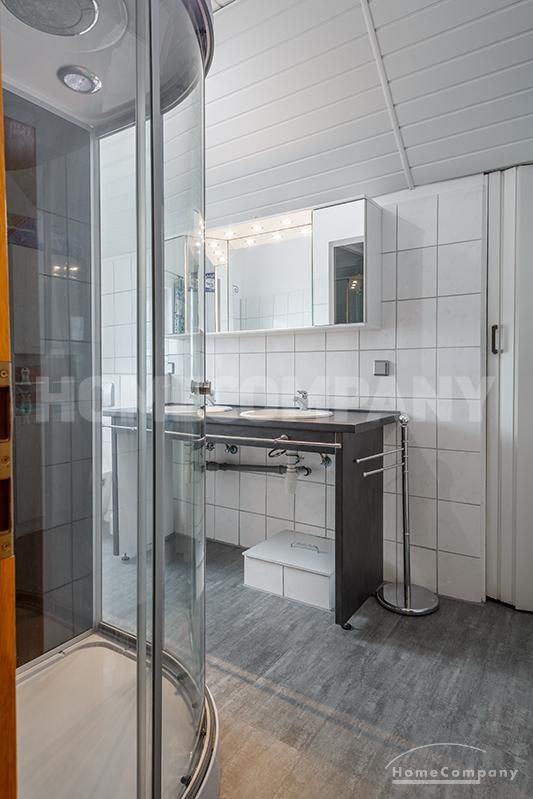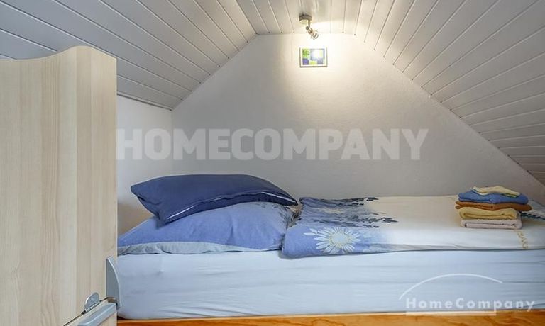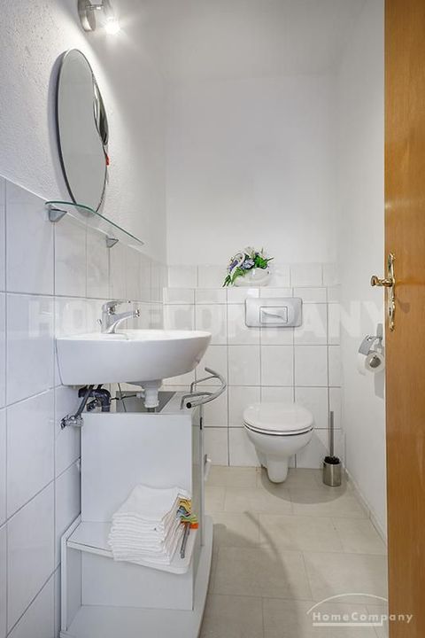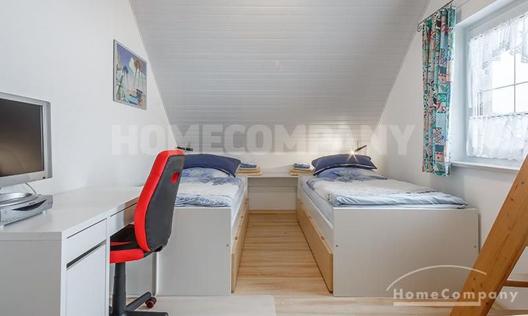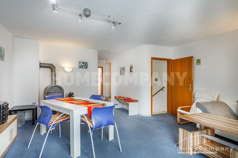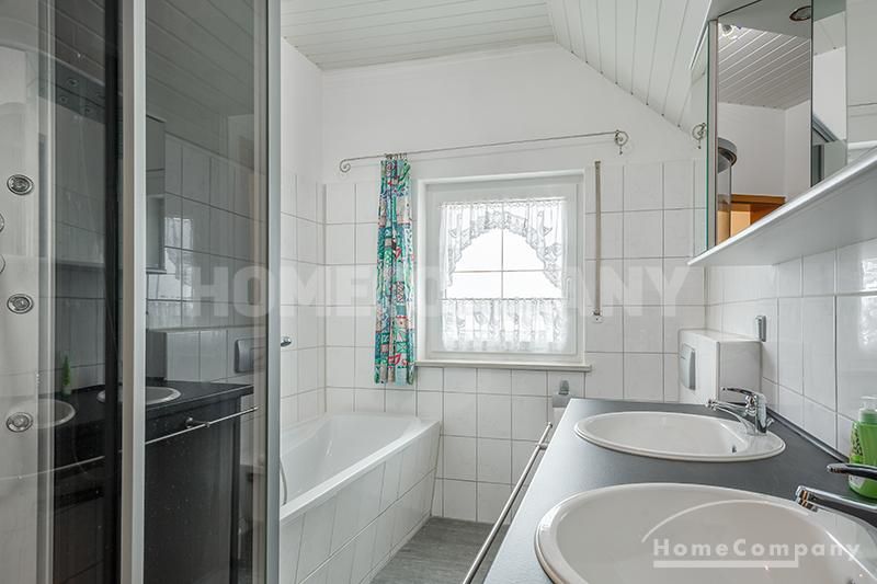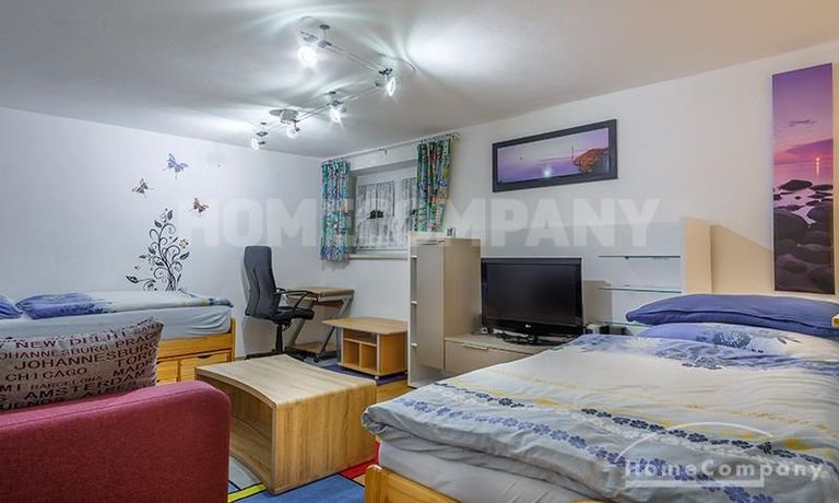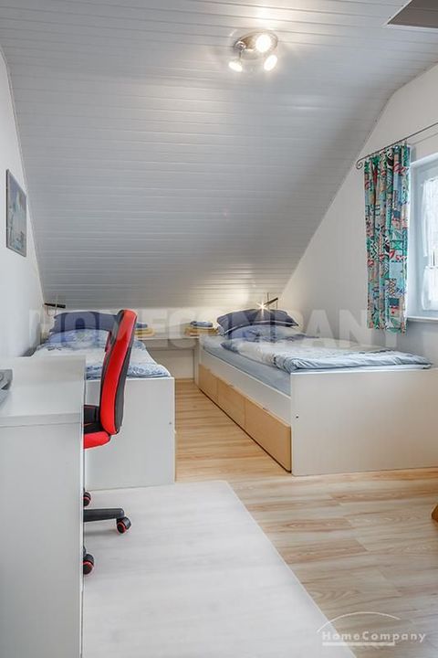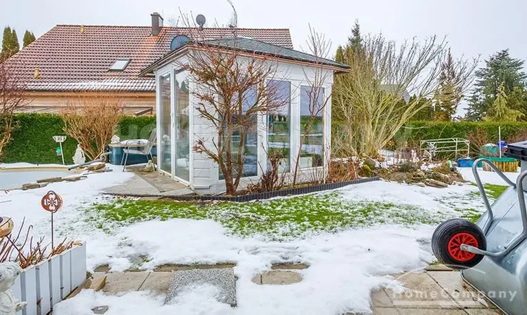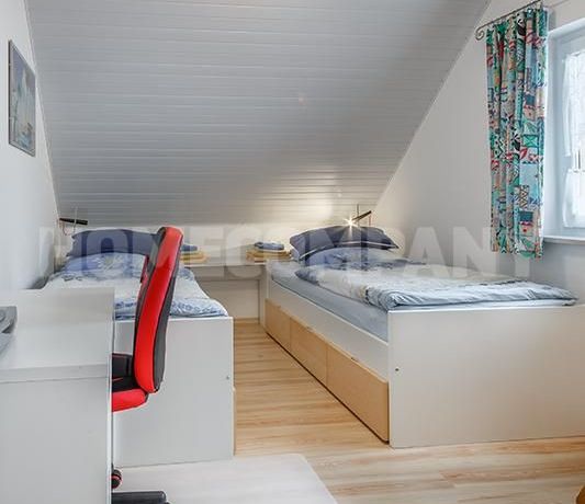 Sunny, furnished 4-room semidetached house near Dachau, in Bergkirchen-Lauterbach. Large living room with suite, wood burner, dining table for six people and access to the terrace. Sleeping facilities in a spacious bedroom with double bed and in the guestroom (2 single beds). Two further sleeping facilities in a combined office/guestroom. The kitchen with window is well equipped (dishwasher, microwave, extractor hood, oven, and induction cook top). The bathroom with window and 2 washing basins comes with a tub and a large glass shower.