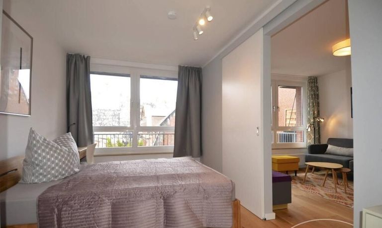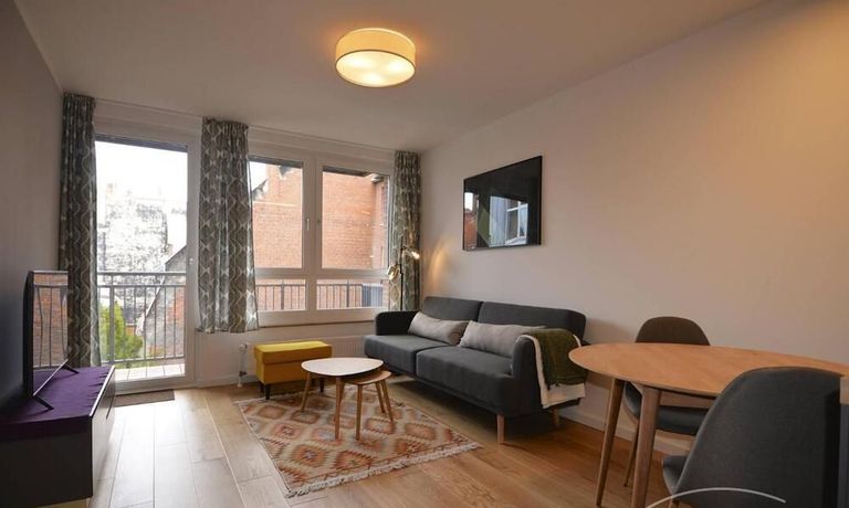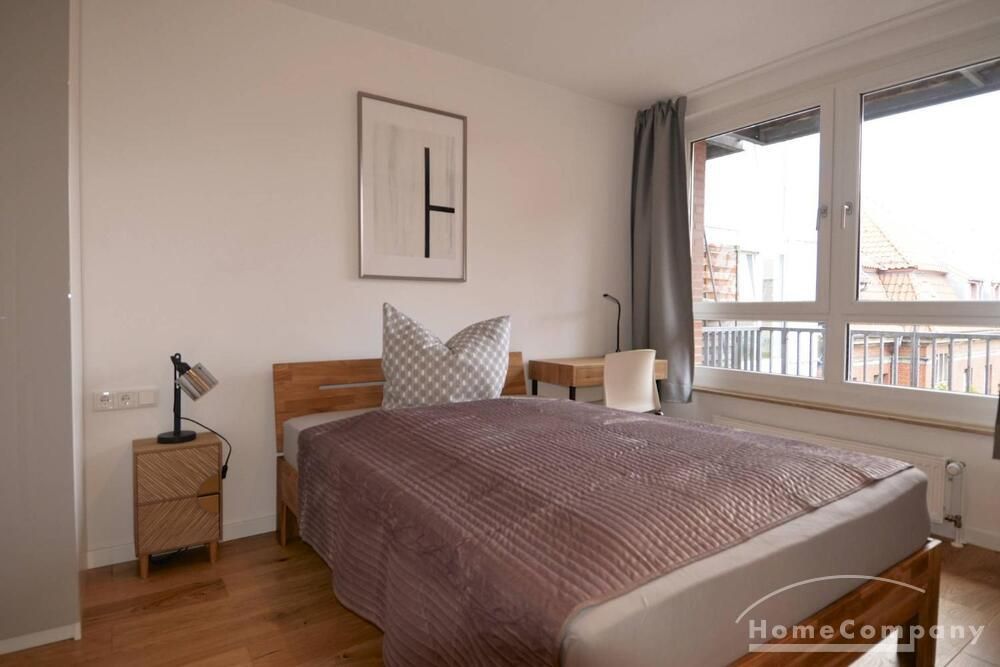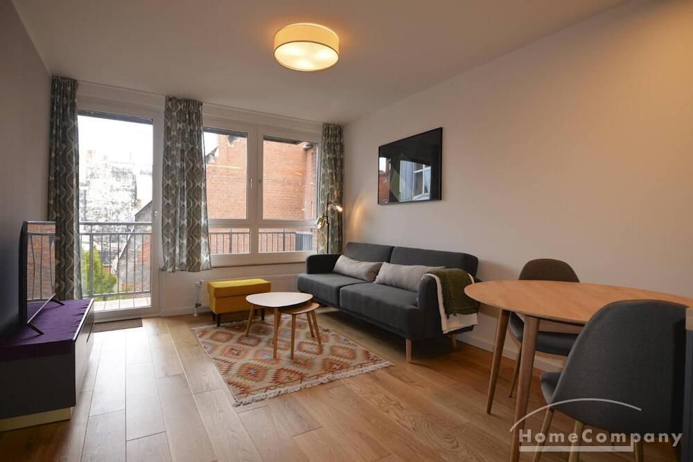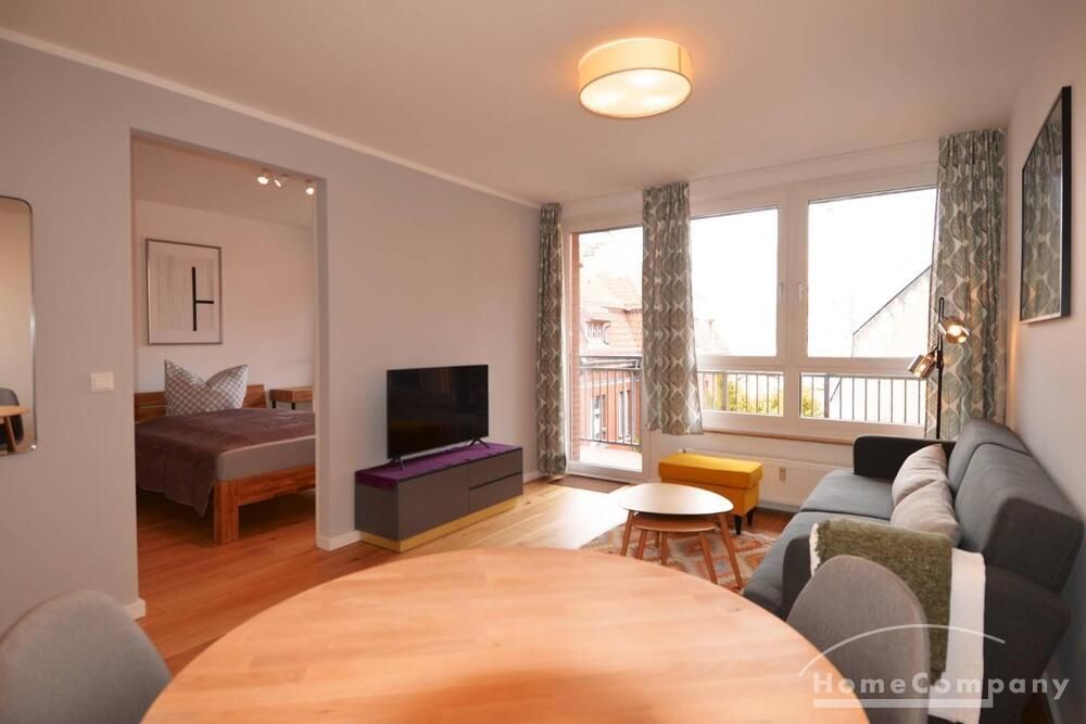 Modern and fully furnished 1-bedroom flat with a balcony in Berlin Prenzlauerberg. The flat is equipped with double bed, fitted kitchen, cable TV with DVD, radio, microwave oven, central heating, washing machine, Internet and telephone. Modern tiled bathroom. On the 3th floor, lift available.