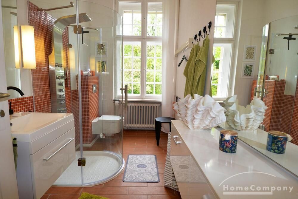 Stylish, comfortable and relaxing, in the wonderful listed, spacious area of the Ludwig Hoffmann Quarter with surrounding nature reserves, you can “unwind” wonderfully after a hard day at work, or if you have explored the city, whether by car or public transport, you can get anywhere quickly and yet live at a slower and calmer pace. Anyone who has an eye for or love of architecture is in very good hands here. Ludwig Hoffmann, the influential architect and Berlin’s city councilor for construction, has realized some wonderful projects here in Berlin-Buch, in addition to the Reichsgericht in Leipzig and his work on the Pergamon Museum in Berlin.