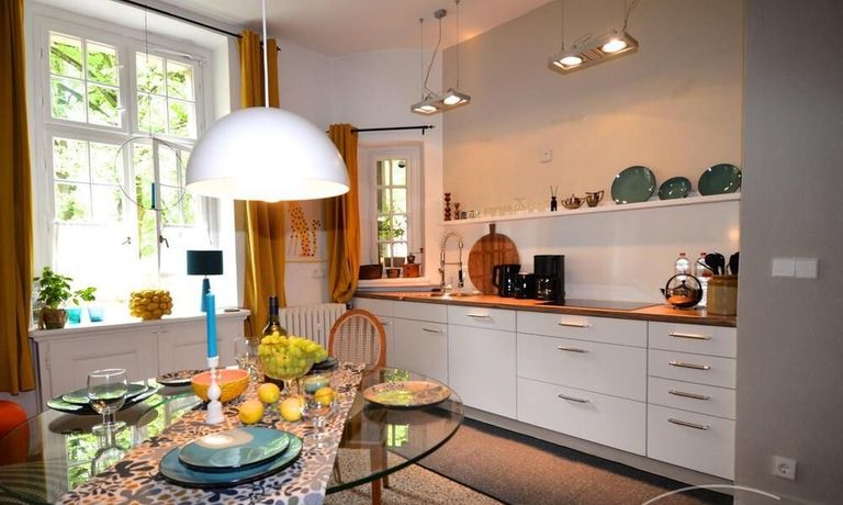 AG146844 The renovated and individually furnished 2-room apartment with a large kitchen-living room is located in a historic town villa with an associated park-like, idyllic garden, very conveniently located, yet quiet.