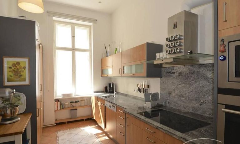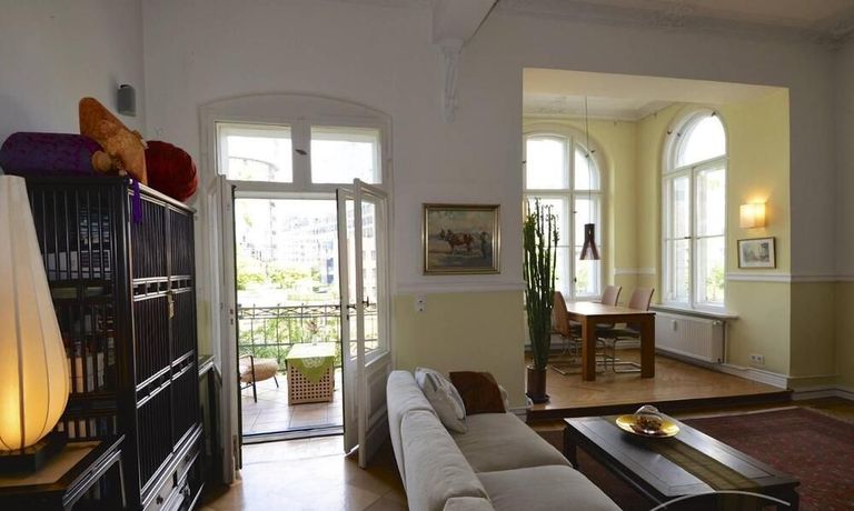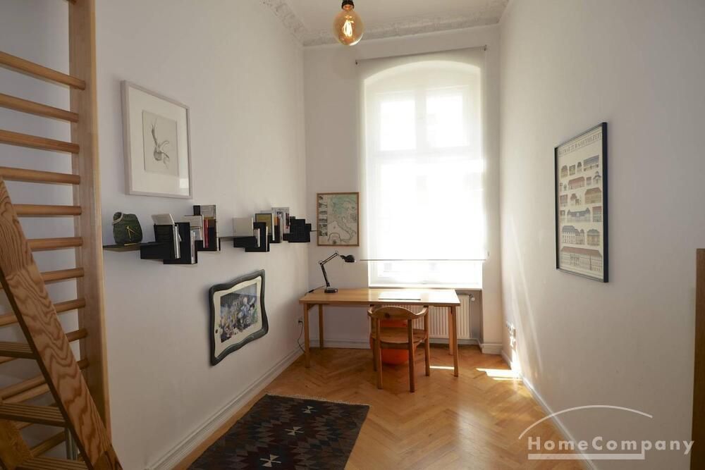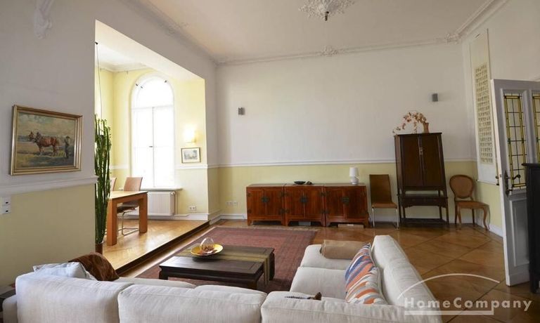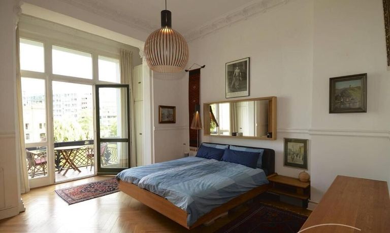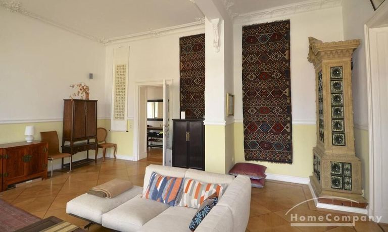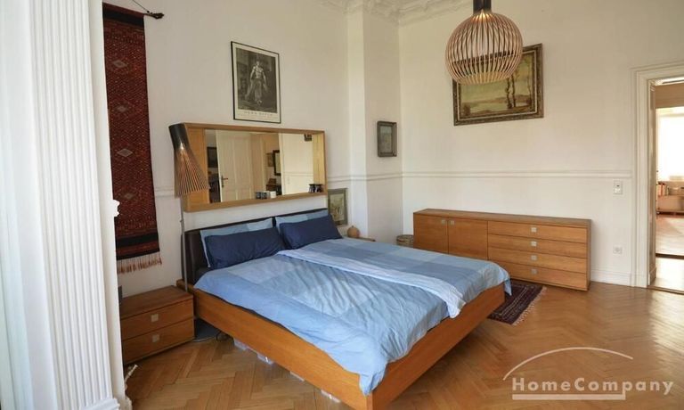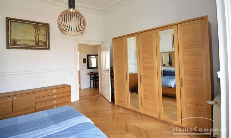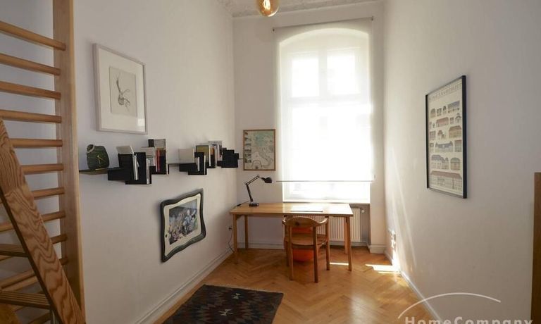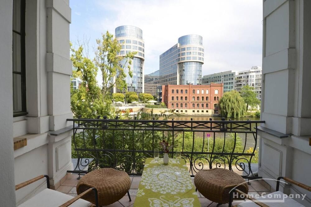 Unique bel etage apartment in a listed old building from 1885, with beautiful stucco ceilings, 3.80 m room height and parquet floors in all rooms. Fantastic view over the Spree from two balconies. Two bedrooms (180×200 & 140×200). Two jobs. Fast internet. Fully furnished and equipped. Piano available. Personal and tasteful decoration. One of the most beautiful locations Berlin has to offer.