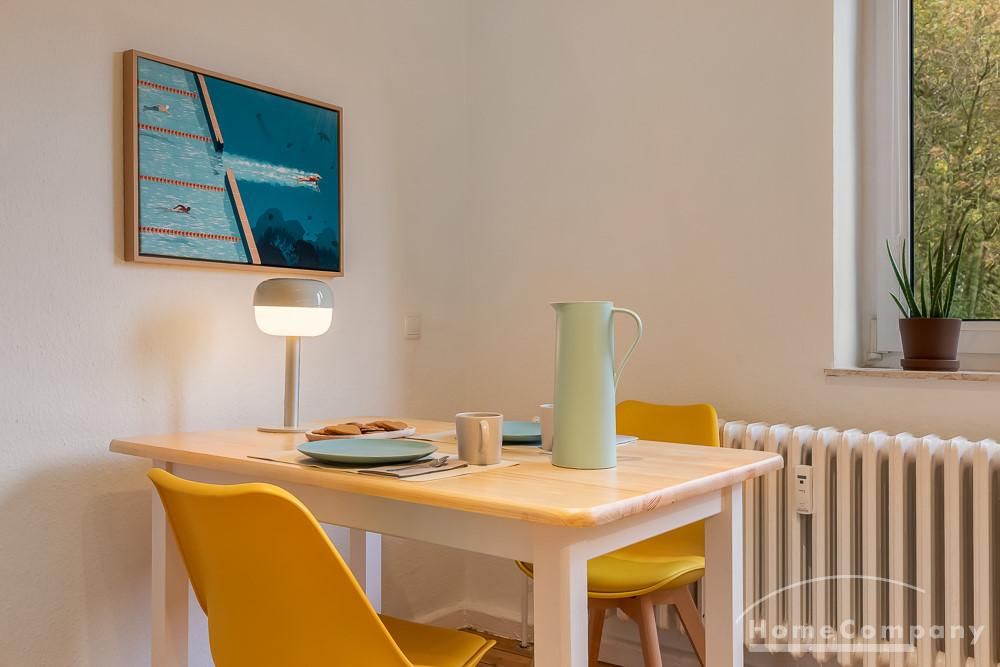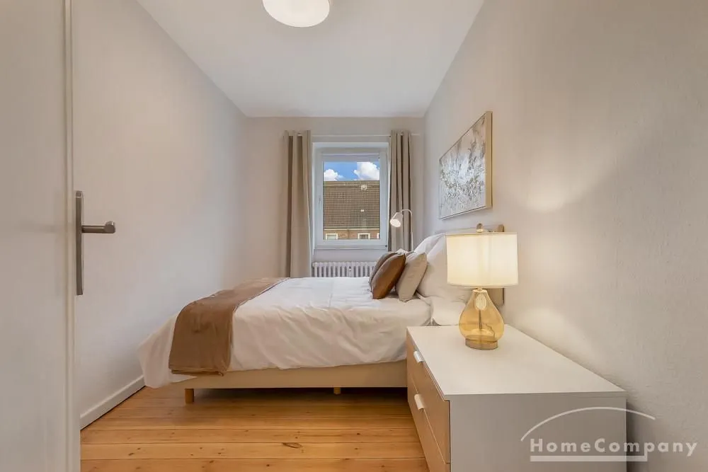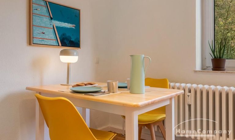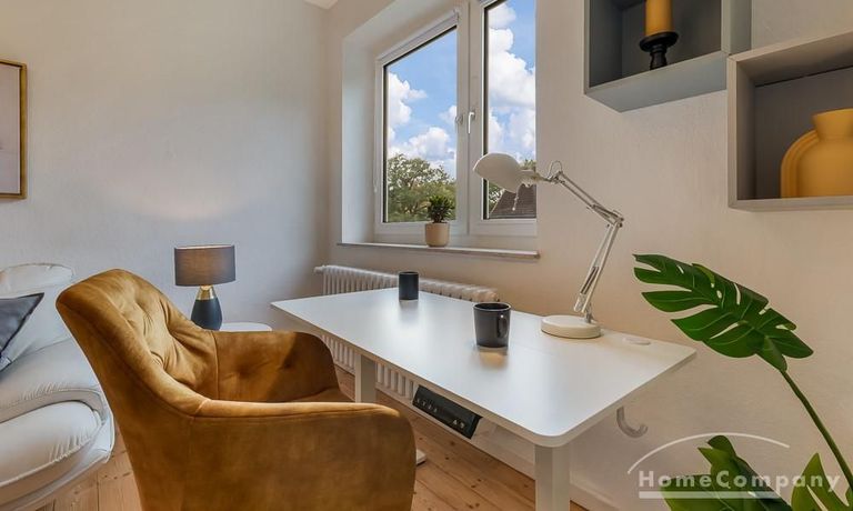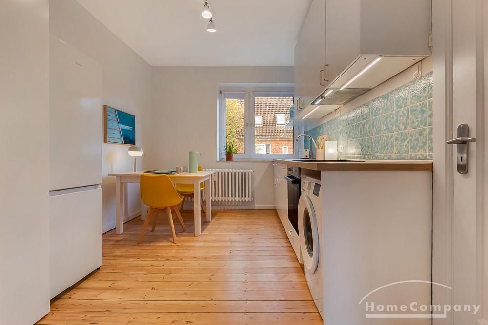 The beautiful, high-quality renovated and very well divided 2.5-room apartment is located on the 1st floor of a very well-maintained apartment building in a quiet location in Kiel-Ellerbek but still close to the center (10 minutes away).