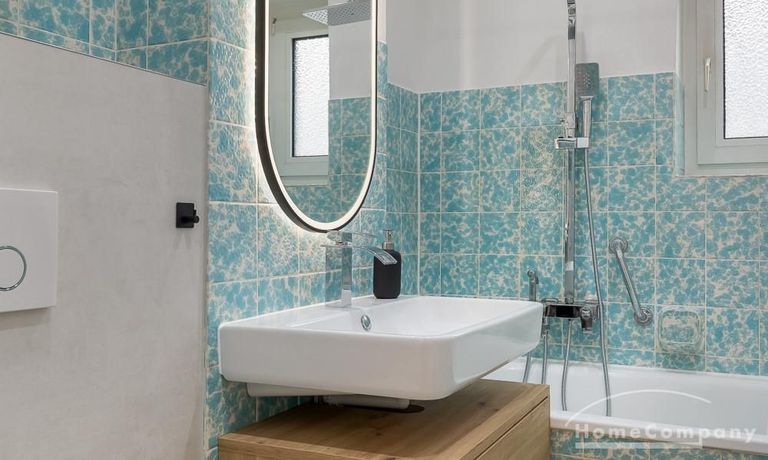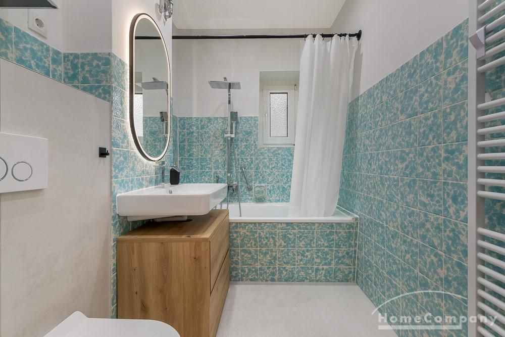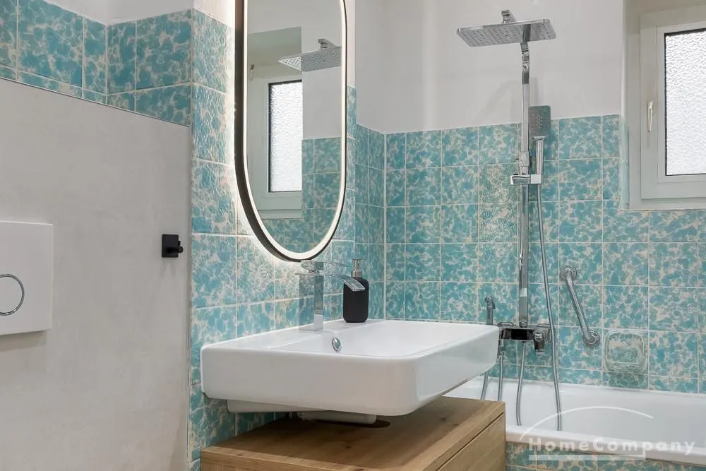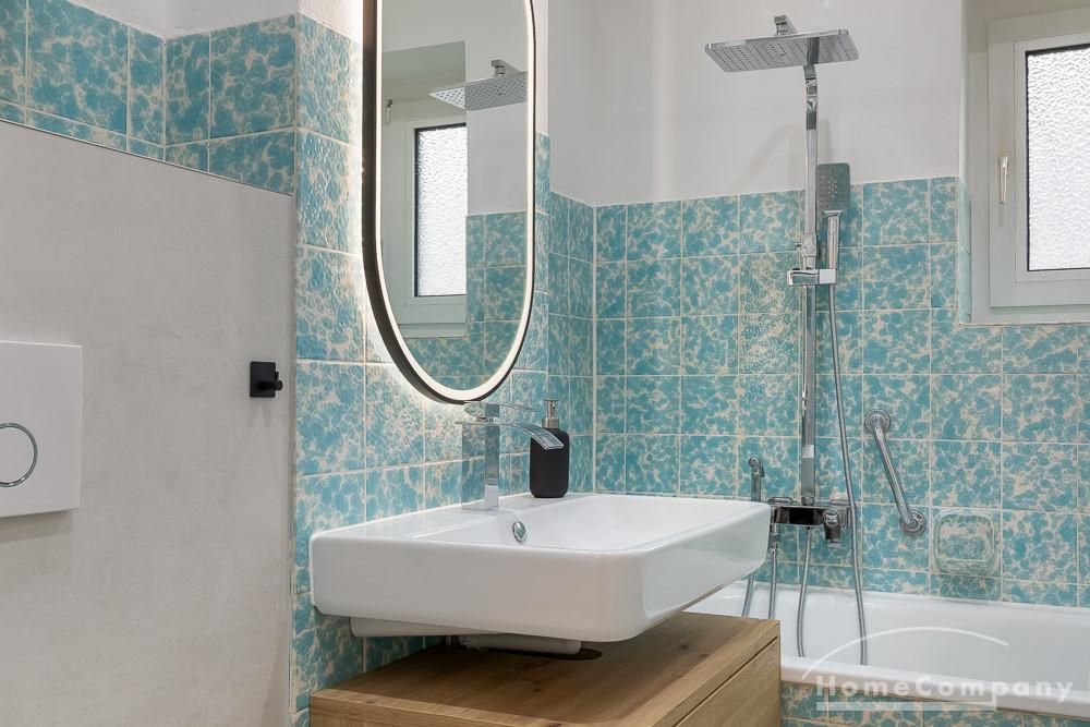 – Renovated bathroom with bathtub, rain shower and towel radiator