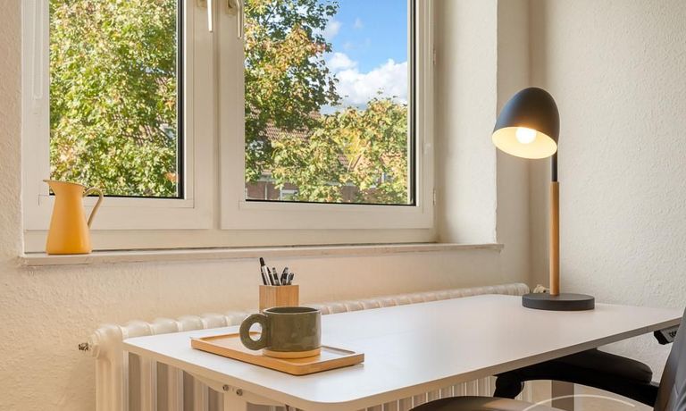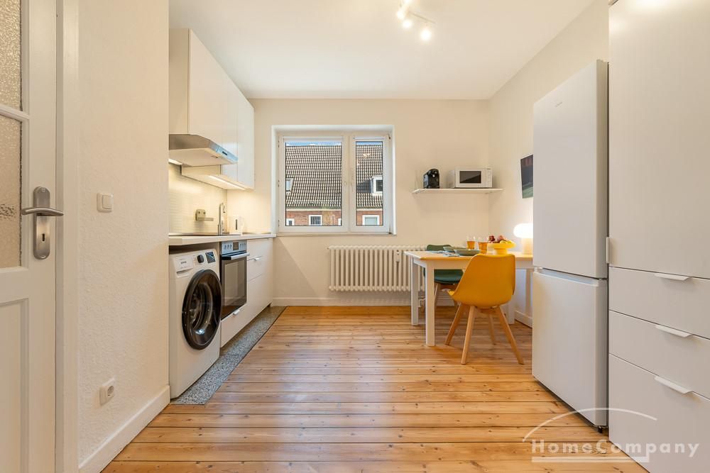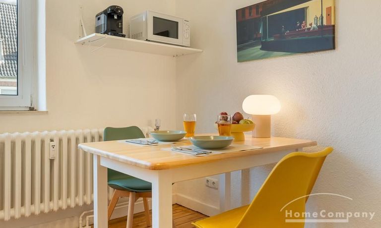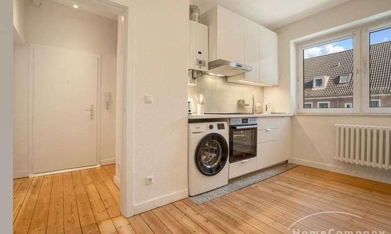 The beautiful, high-quality renovated and very well divided 2.5-room apartment is located on the 1st floor of a very well-maintained apartment building in a quiet location in Kiel-Ellerbek but still close to the center (10 minutes away).