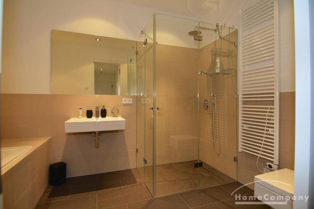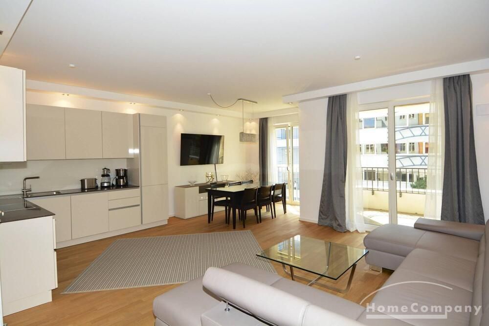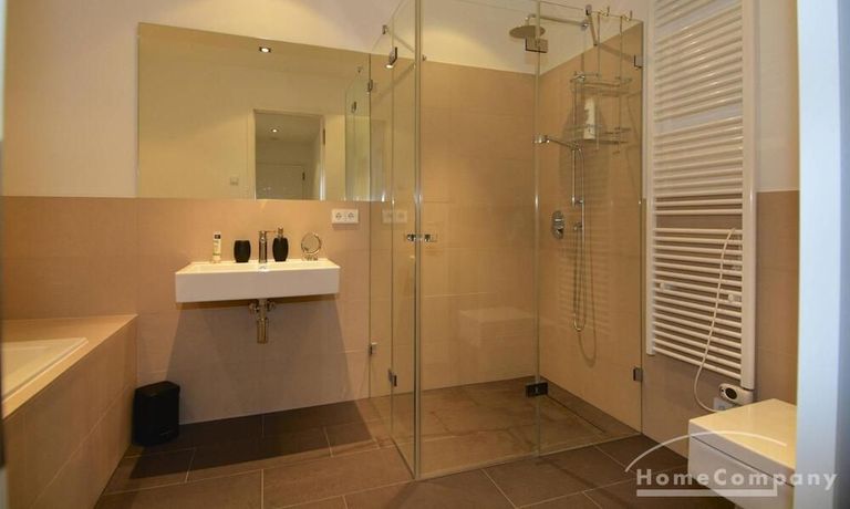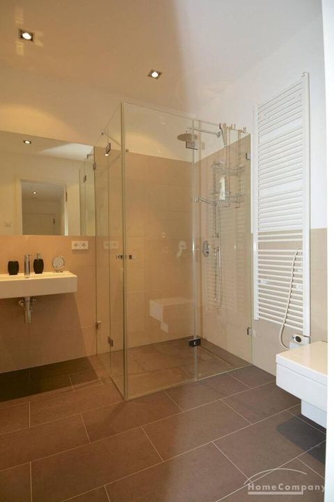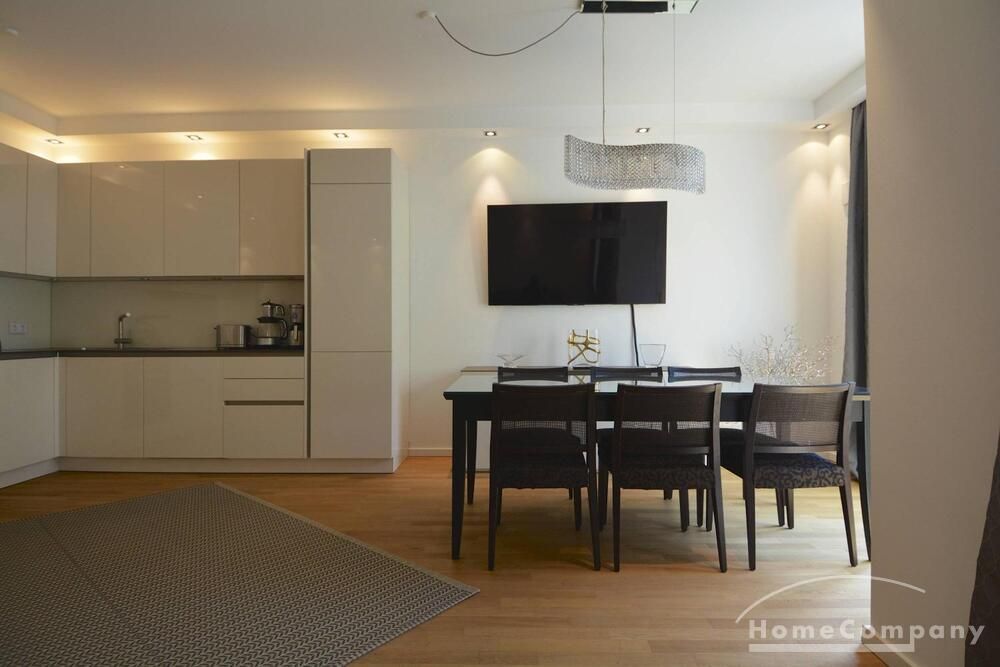 Beautiful, high quality furnished 3-room apartment in Wilmersdorf. This exclusive apartment consists of a bright and very spacious living room with open kitchen and dining table, a very inviting double bedroom and a guest room. The bathroom is modern tiled and has a walk-in shower and bath.