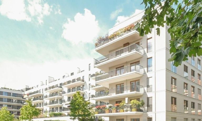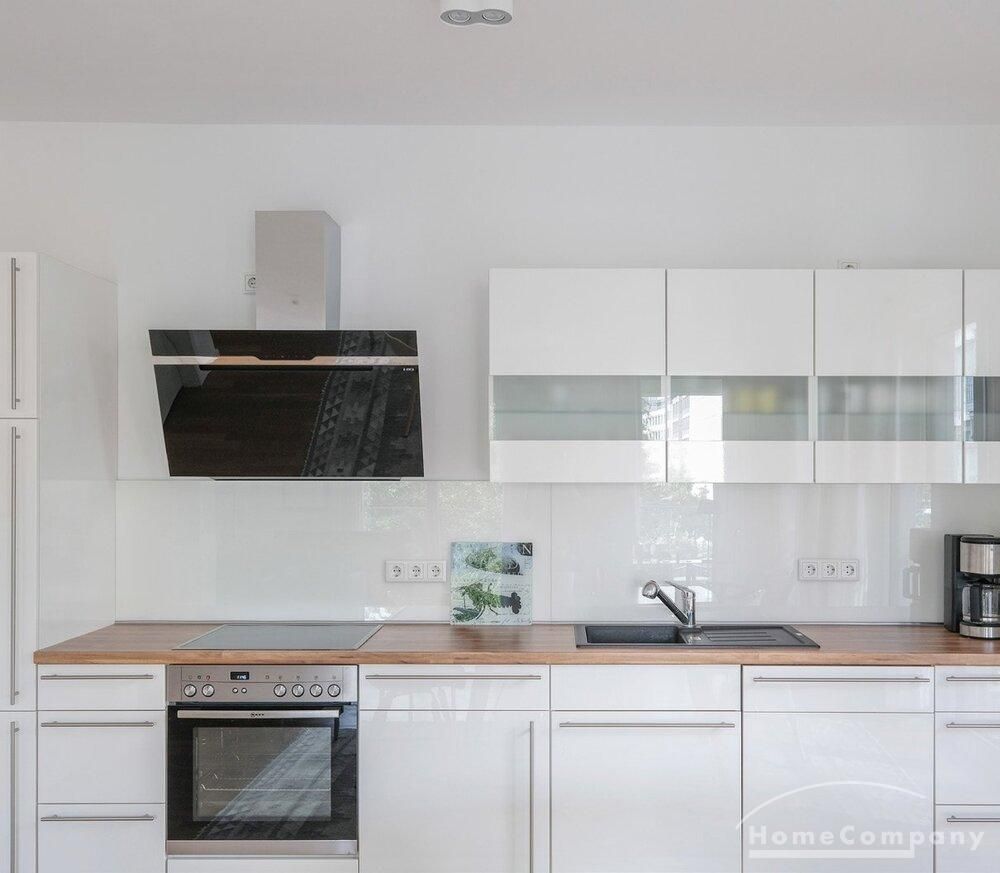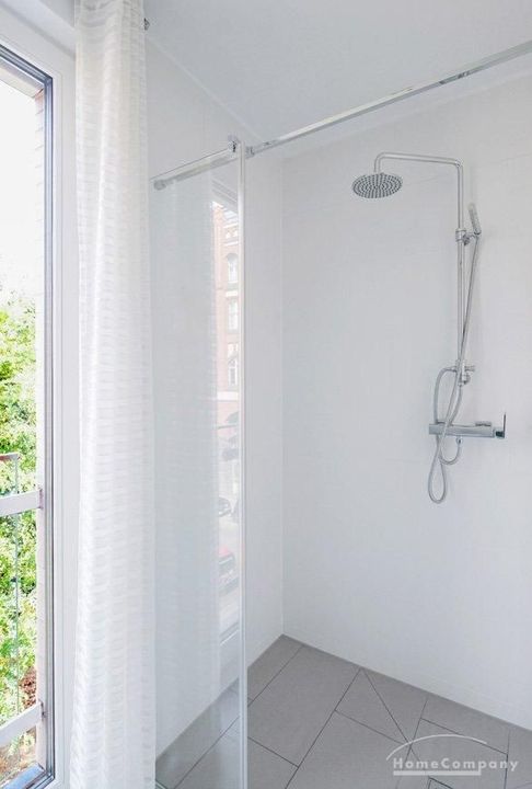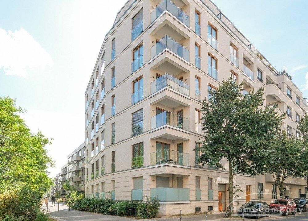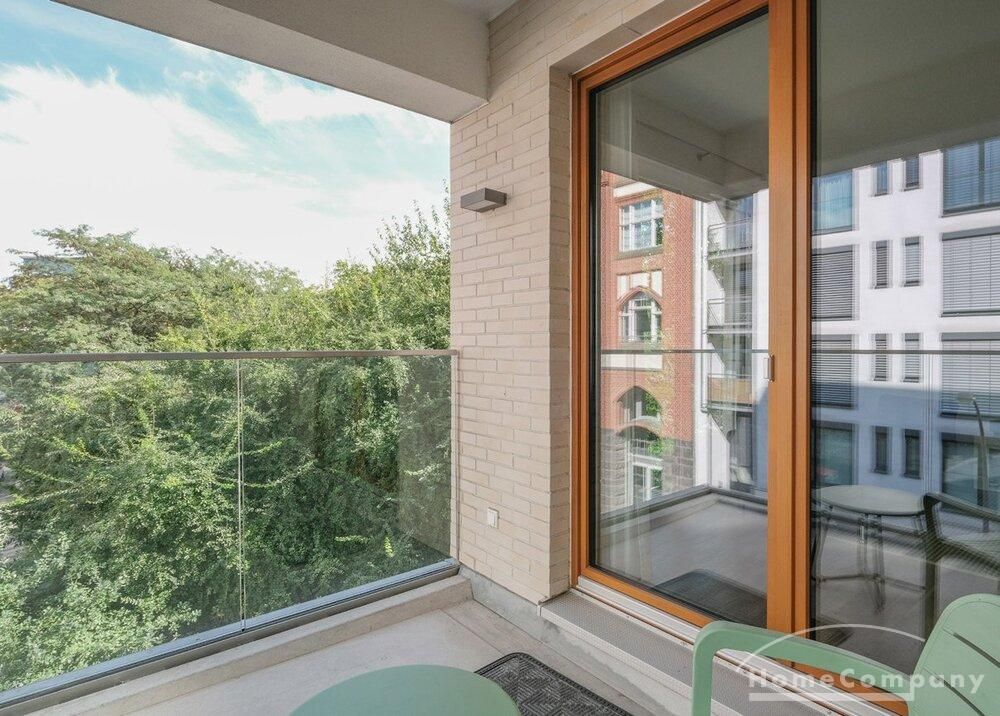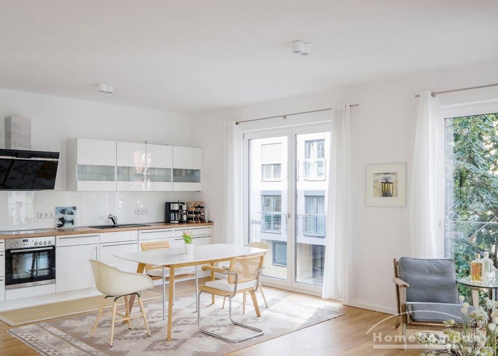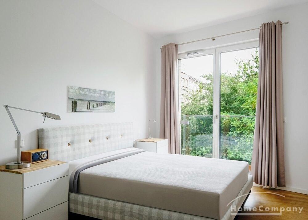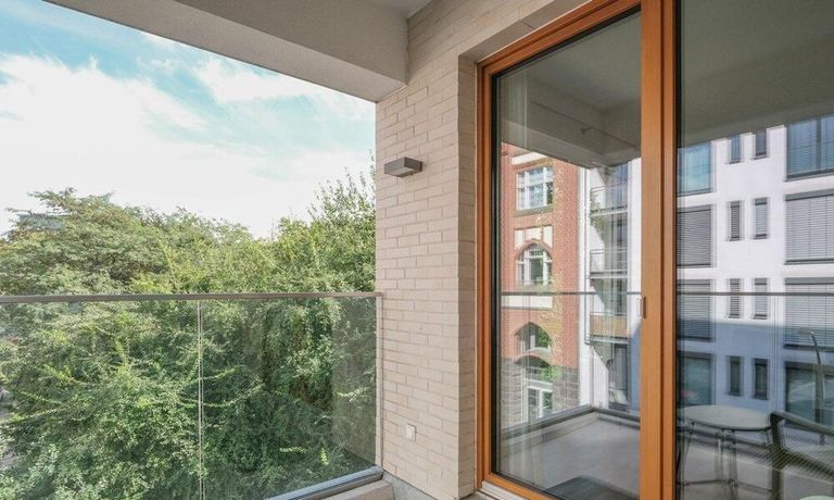 From the light-filled living room, you access the northwest-facing balcony, which offers a charming view of the adjacent Luisenstädtischer Kirchpark.