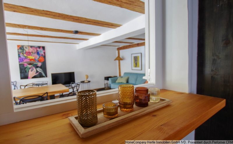 Over a staircase in the hallway to the bedroom as well as guest room, bathroom with shower/WC. The spiral staircase in the hallway leads to the attic with work area, relaxation corner as well as washing area. An outdoor seating area in front of the house.Parking space in front of the house is included in the rent.