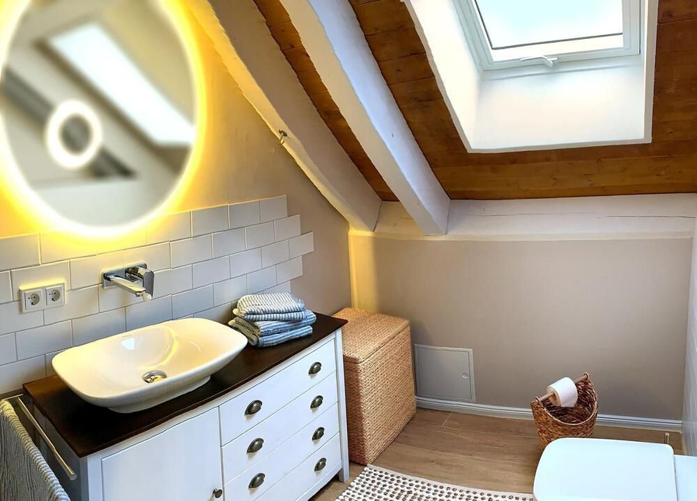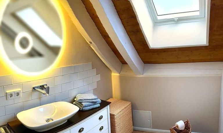 The light-flooded attic apartment is located about 8 km south-west of Potsdam directly at the Caputh Castle Park. It is located in an absolutely quiet cul-de-sac and is lovingly furnished in Scandinavian country style. An apartment to feel good. Of course with super fast internet 250 Mbit/sec. Supermarket and bus stop can be easily reached on foot.