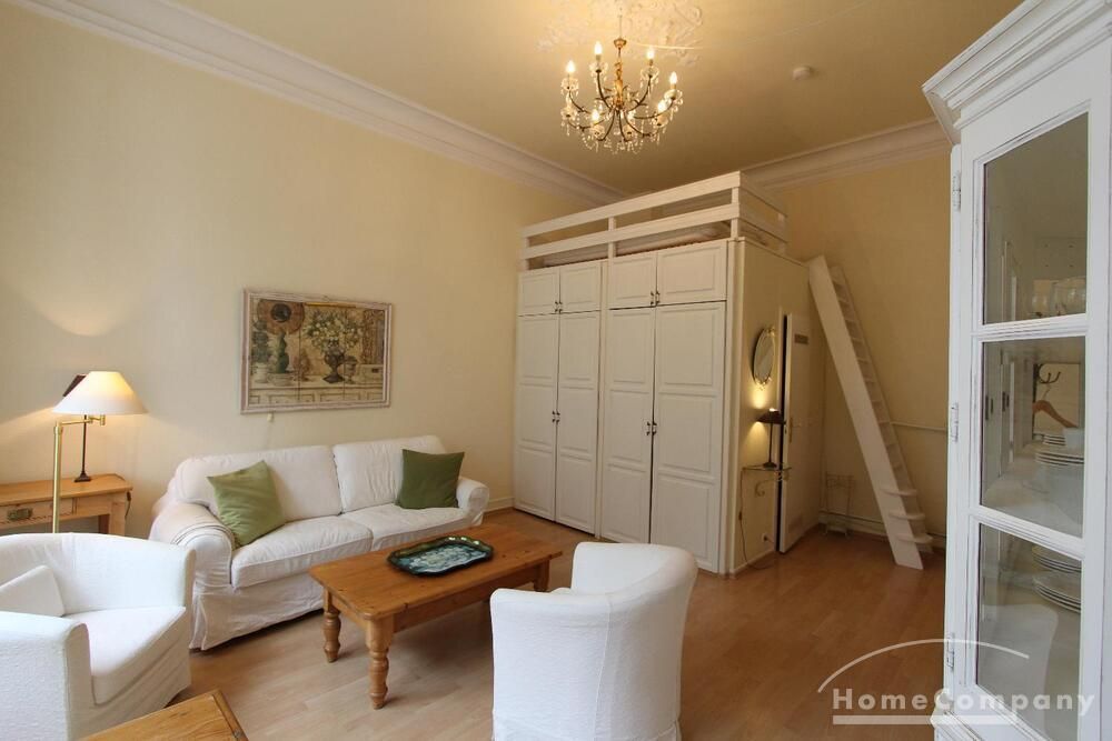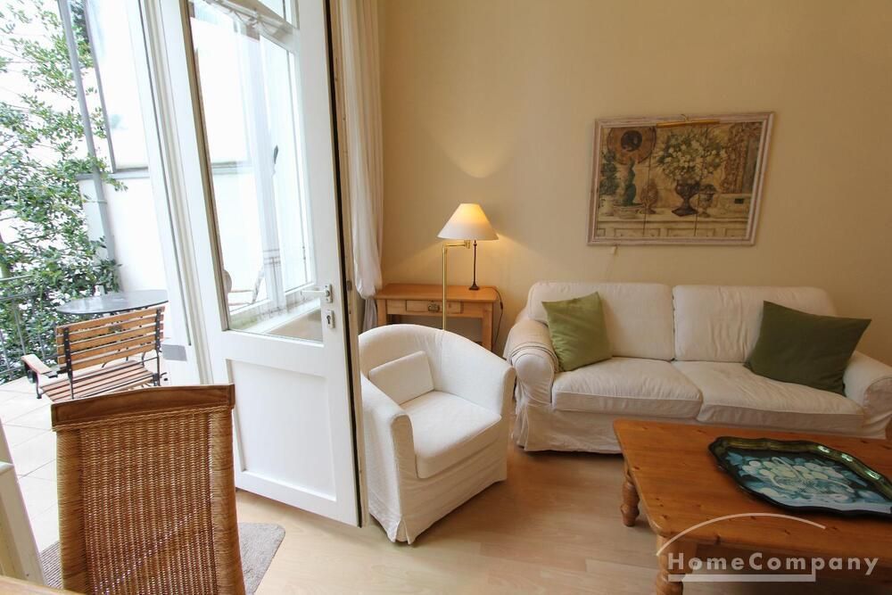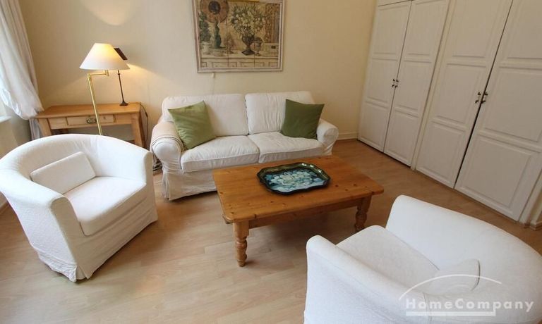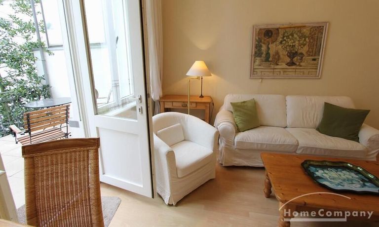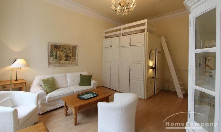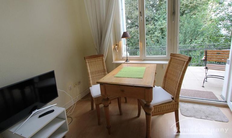Well kept apartment in the elegant country style. The living room is divided into two areas. A cozy corner with a sofa bed and a 140cm berit living area with dining area. The apartment is located in a beautiful old house with high ceilings. A wonderful shower rounds out the handing of welcoming.