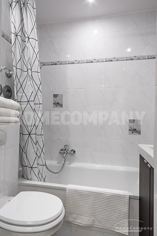 The separate built-in kitchen is equipped with everything for daily use, e.g. oven and coffee maker. Light bathroom with tu band sufficient storage space.