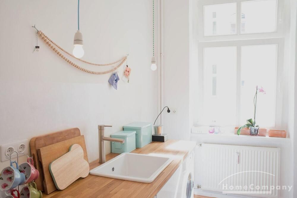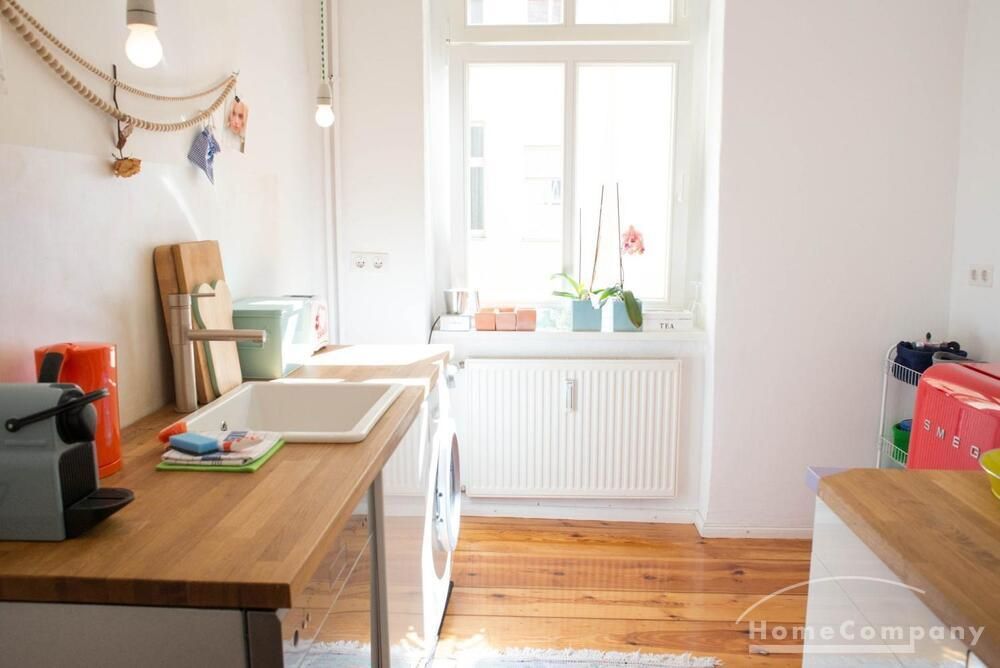 Prenzlauer Berg, sidestreet near Schonhauser Alle, nice, green and central location. The flat is completely equipped. The bathroom offers a shower. Good sized livingroom, comfortable bedroom with doublebed, modern kitchen with dishwasher. The beautiful period building was refurbished in 2013. Amenities include internet and washing machine.