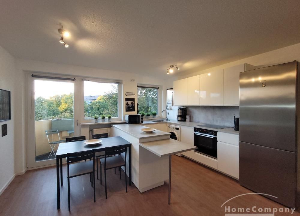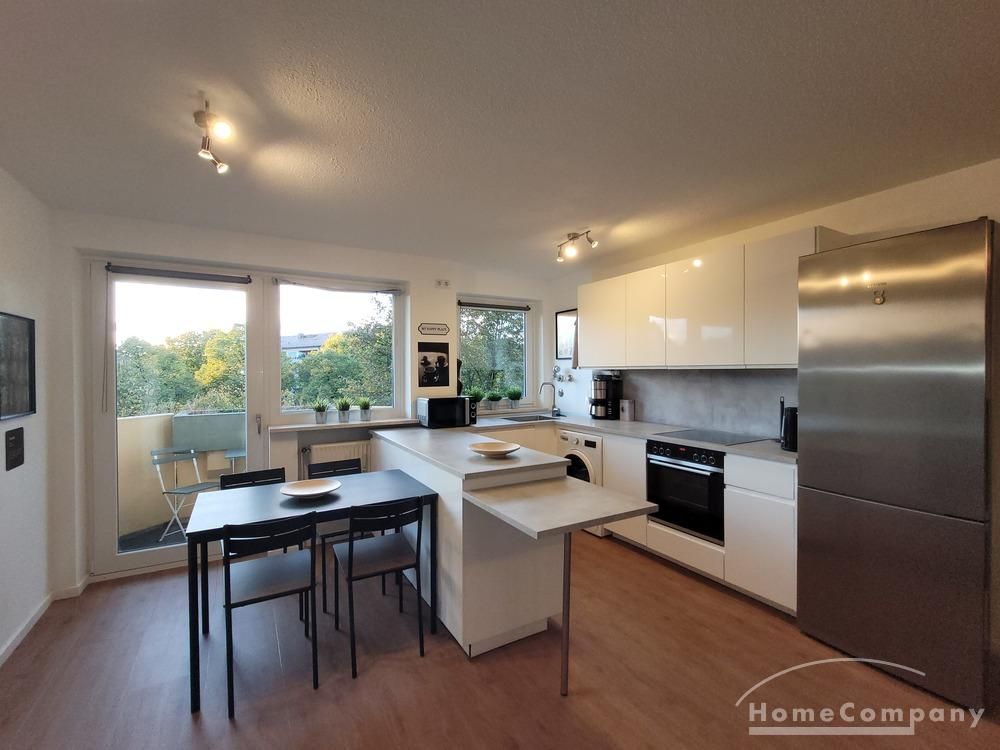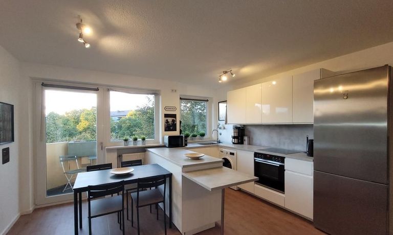 The city apartment is located in a popular area of Munich. There are several bus and streetcar lines and the subway lines U1 and U7 in the immediate vicinity of the property. There are a few restaurants, doctors, supermarkets, bakeries and cafés within walking distance. Various green spaces and parks, fashion stores, fitness studios, bars and bookshops can also be found on site. Nymphenburg Palace Park and the Olympic Park are also close by. The main station is 2 km away and Marienplatz 3 km.