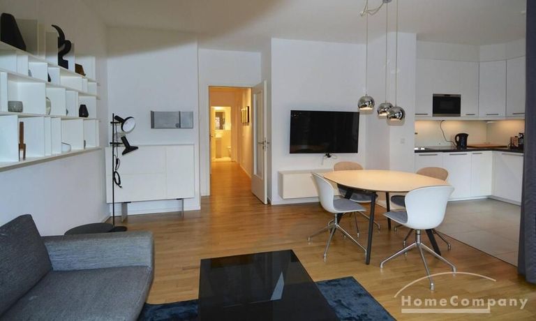 The apartment is a non-smoking apartment. In addition to the modern living room with large flat screen TV, 2 bedrooms offer space for up to 3 people. Some of the rooms are equipped with designer furniture. A fitted kitchen with natural stone slab offers a nice ambience for cooking. There is also a storage room with washing machine and dryer, a bathroom and an additional separate toilet. The unique location on the border between Mitte, Kreuzberg and Tiergarten with one of the largest inner city parks offers many opportunities to enjoy the metropolis in the middle of nature. In the immediate vicinity you can find some of the city’s urban centers on foot: Potsdamer Platz with Sony Center, Philharmonie, Neue Nationalgalerie, Mall of Berlin etc. There are stations not far from the apartment.