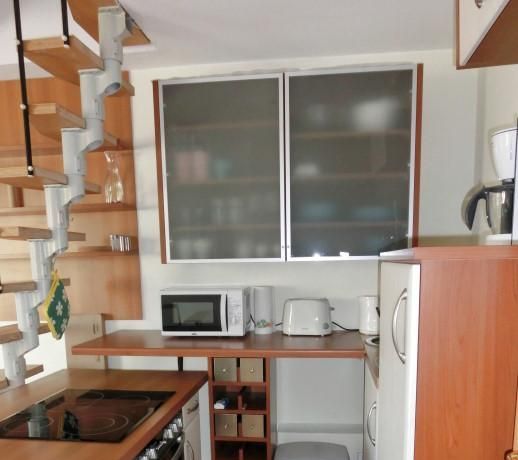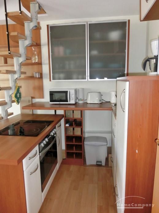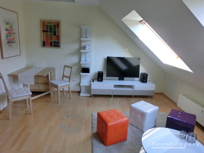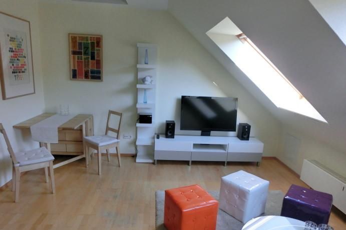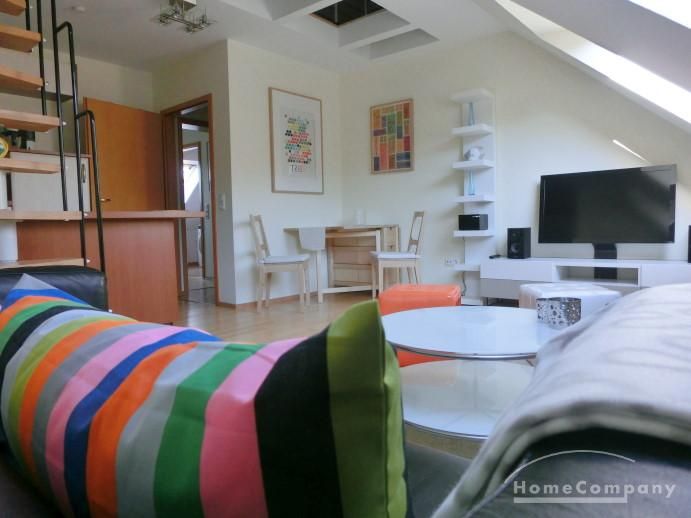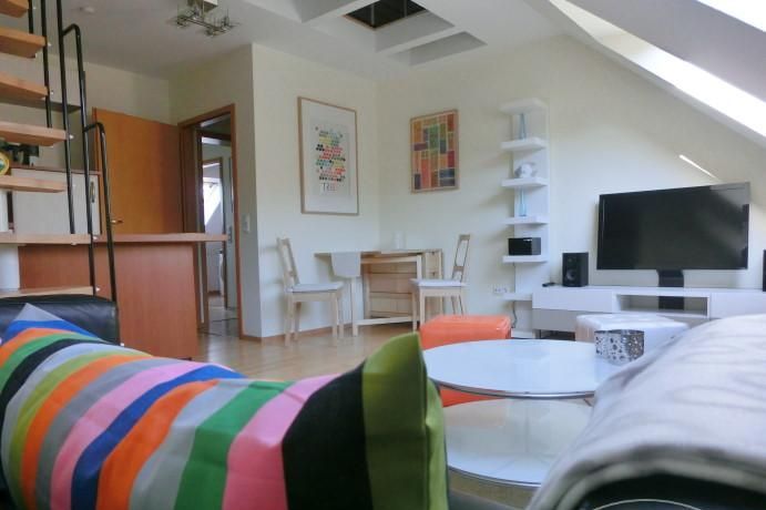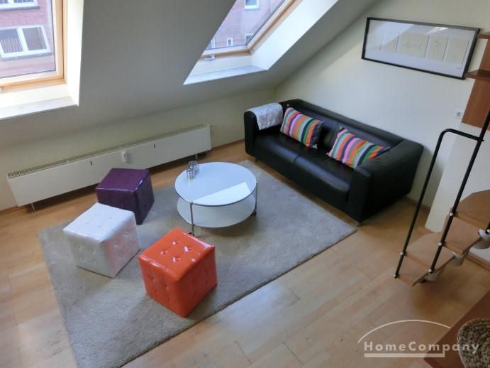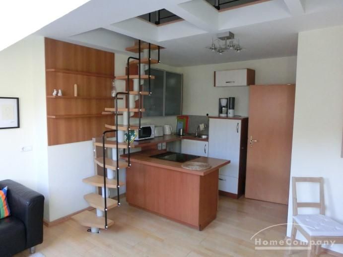The open studio apartment is appointed with a breakfast kitchen and a sleeping gallery. Light-flooded and modern furnished the flat lies in central location near the Dreiecksplatz. Furthermore the apartment has parquet floor and a bathroom with a tub, a washing machine and a dryer. The living room contains a plasma TV and a DVD player.